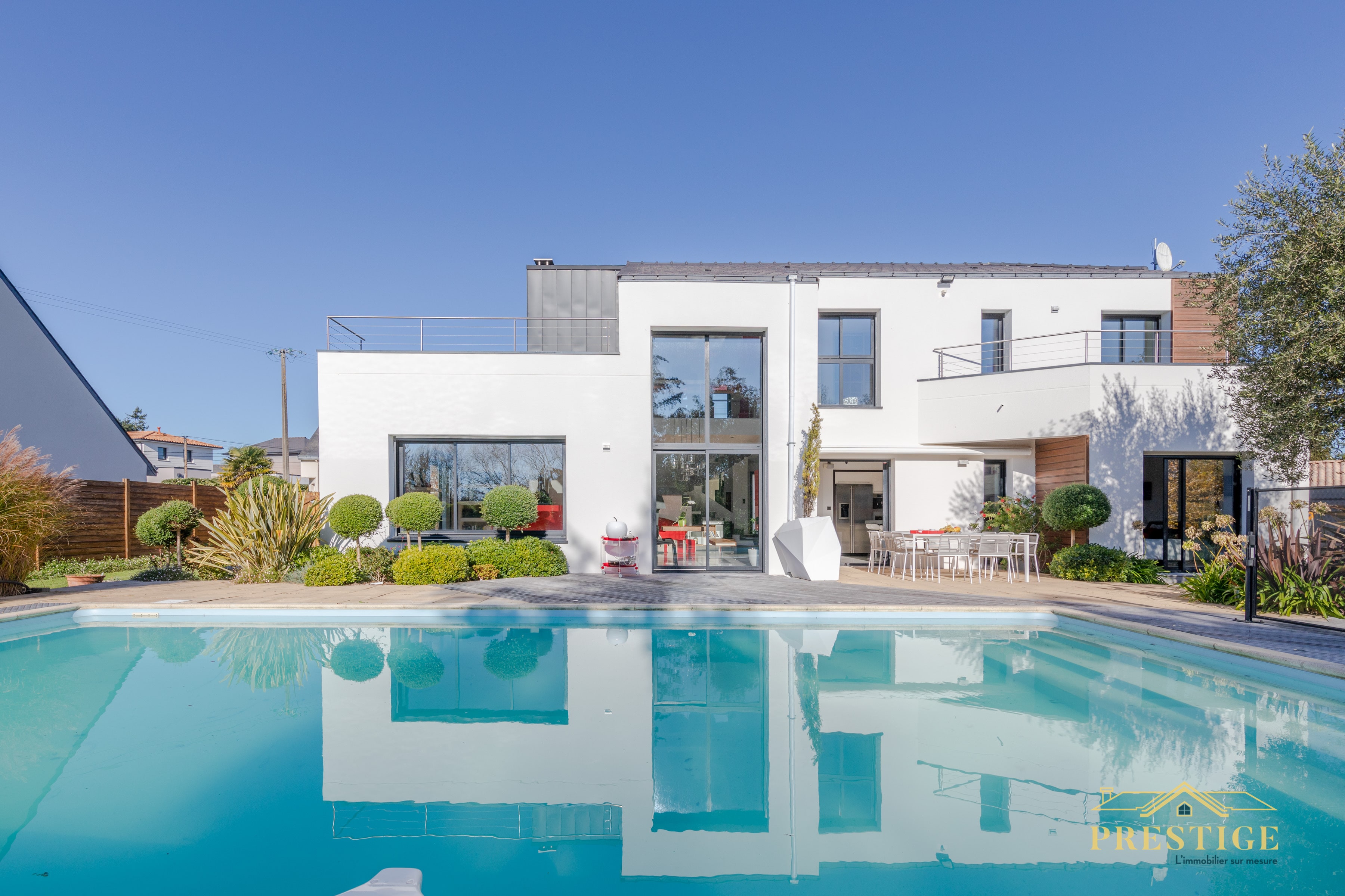 VENDU PAR PRESTIGE ATLANTIQUE - Dans son impasse, aux portes de Nantes sur la commune de Sautron, splendide maison contemporaine de 2006 édifiée sur deux niveaux, agencée avec goût et aux prestations abouties (domotique, arrosage automatique, isolation, système de sécurité, chauffage au sol, aspiration centralisée), propose une surface de 206 m2 habitables. Elle est composée d’une belle entrée avec placard s’ouvrant sur une spacieuse pièce de vie lumineuse agrémentée d’un insert bois, le tout prolongé d’une terrasse et de sa piscine Vinet chauffée. Une cuisine aménagée et équipée Porcenalosa et une buanderie viennent parfaire ce lieu de vie. Son espace nuit dispose d’une suite avec sa propre salle de bains ainsi que d’une master room avec salle d’eau, dressing et accès terrasse. A l'étage, 3 suites avec leur propre salle d’eau et terrasse, une mezzanine surplombant le salon offre une vue imprenable sur la piscine donnant un point final à ce niveau. Un grand double garage avec rangements et un carport complètent ce bien d’exception. Terrain clos et arboré de 1209 m2. Une maison récente bénéficiant d’un agencement de choix et aux portes de Nantes.Voici le contenu de votre actualité !