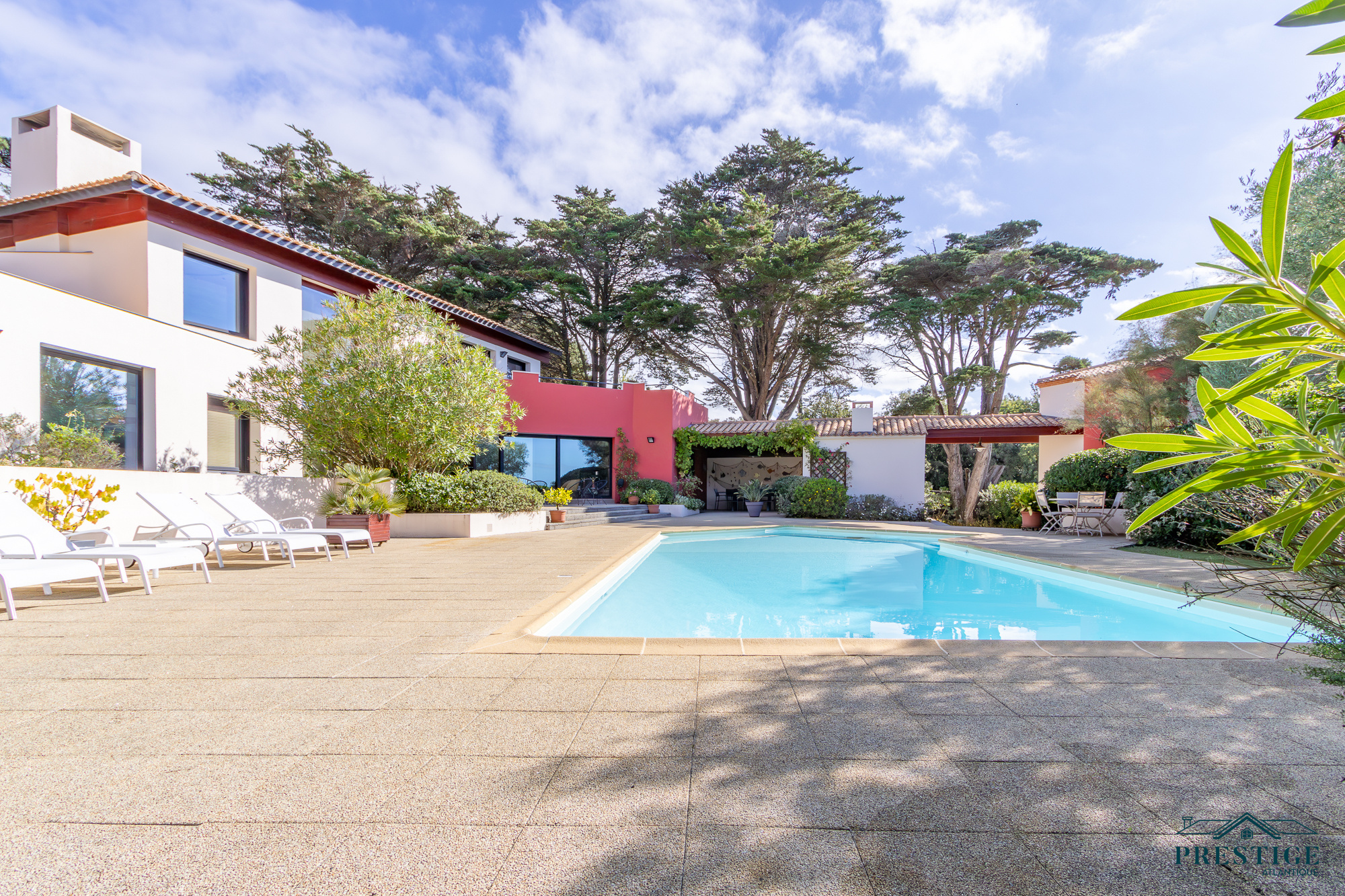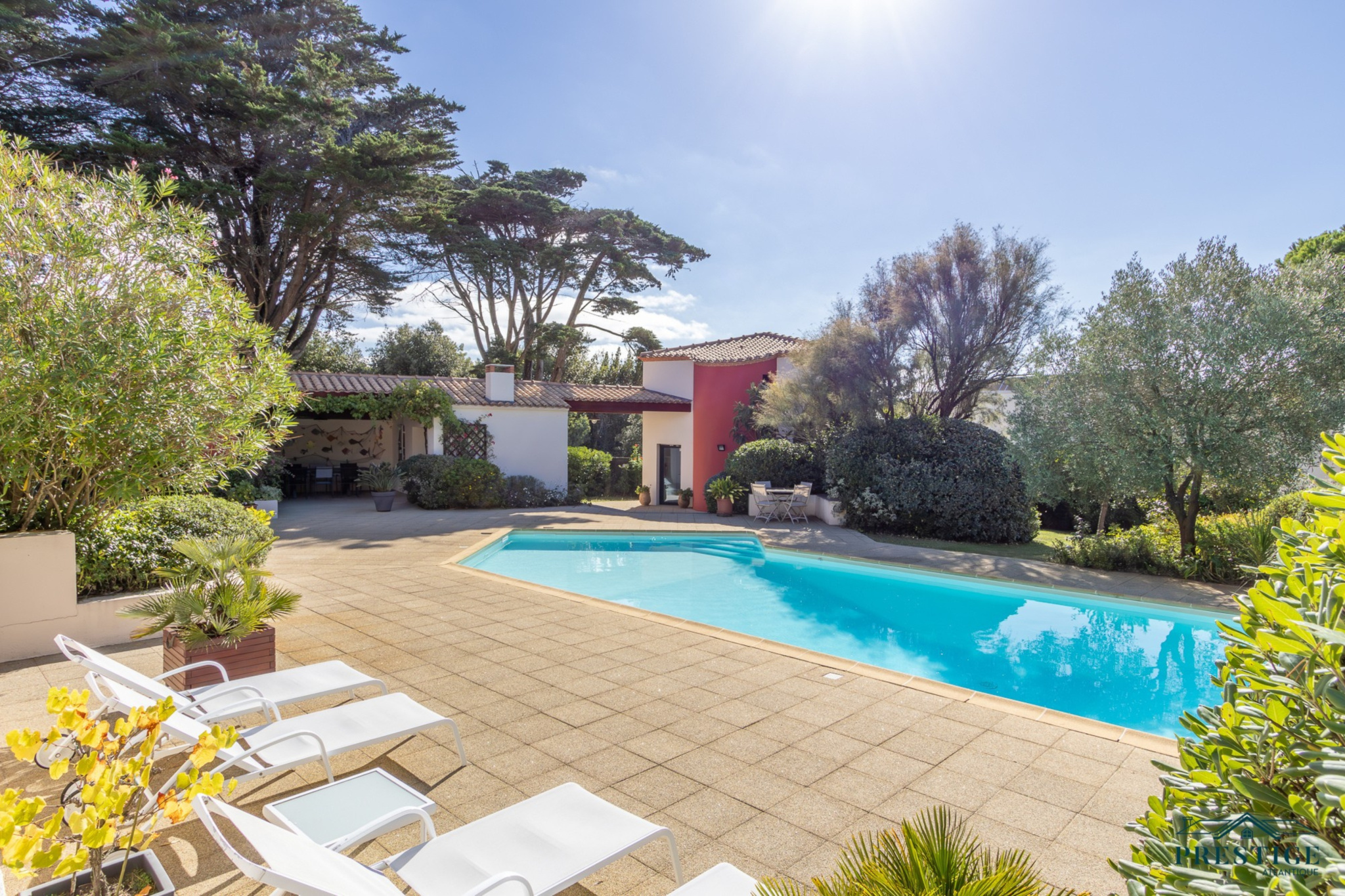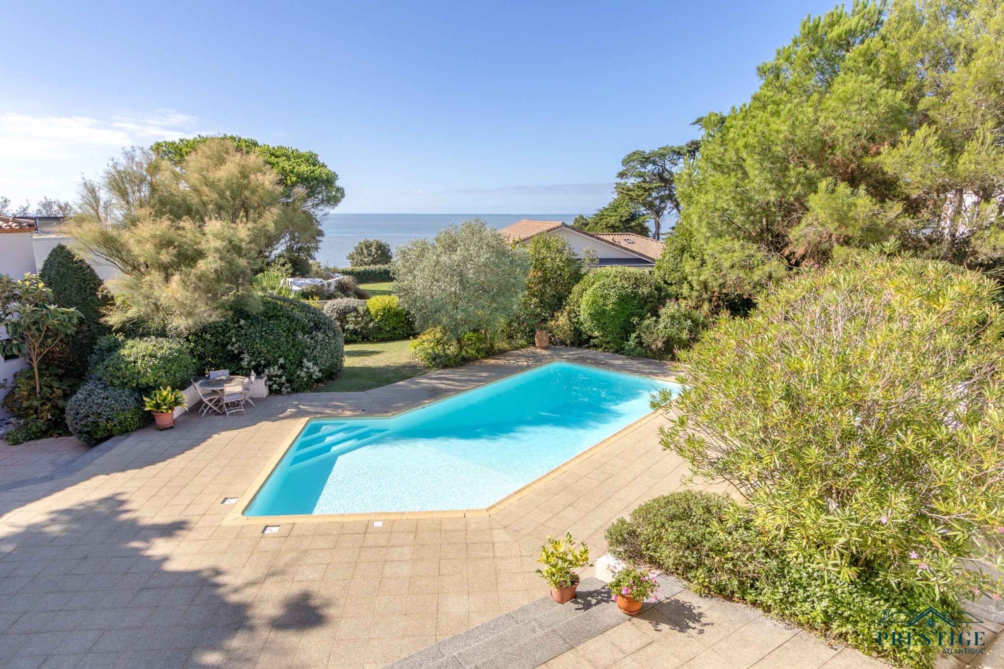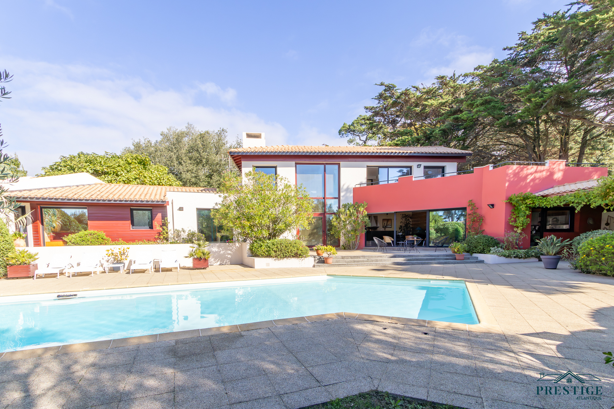EXCLUSIVITÉ - PRESTIGE ATLANTIQUE. Nichée au cœur d’un secteur prisé et dans un cadre paisible, cette villa d’exception sur deux niveaux se distingue par sa superficie habitable de 408 m² et par son architecture soignée. L’entrée spacieuse vous accueille et s’ouvre sur un vaste espace de vie en open space lumineux comprenant une cuisine aménagée et équipée de qualité, cette pièce de vie parfaitement agencée donne sur une terrasse offrant une vue spectaculaire sur l'océan, le tout prolongé de sa piscine chauffée. L’espace nuit comprend deux chambres spacieuses et une suite parentale, toutes bénéficiant d’un accès direct à l’extérieur. Une élégante salle de bains complète harmonieusement ce niveau. À l’étage, une Master Bedroom avec sa terrasse privée jouit d’une vue mer à couper le souffle. Ce niveau se compose également d'un bureau, d'un salon de lecture et d'une salle de jeux, offrant ainsi une atmosphère intime et conviviale, propice à la détente. Une maison d’amis indépendante de 66 m2 avec deux chambres et une salle de bains ajoute une touche de confort tout en étant parfaitement intégrée à la propriété. Le jardin, véritable havre de paix propose un parc paysager magnifiquement arboré, une cuisine d’été conviviale et une terrasse couverte, idéal pour profiter de moments de partage en toute sérénité. Edifiée sur une parcelle de 2474 m2, un sous-sol avec cave et atelier, un garage ainsi qu’un pool-house viennent parfaire ce bien unique. Cette villa de prestige, rare sur le marché, se distingue par son luxe, sa situation idéale et ses prestations uniques offrant un cadre de vie inégalé. “Les informations sur les risques auxquels ce bien est exposé sont disponibles sur le site Géorisques http://www.georisques.gouv.fr”. Pour plus de renseignements ou pour organiser une visite privée, contactez-nous sans plus attendre, PRESTIGE ATLANTIQUE 02.40.21.91.13. Prix de vente 2 200 000€ FAI dont 5 % d'honoraires agence à la charge de l'acquéreur soit un prix net vendeur de 2 095 238 € (RCS. Saint-Nazaire 897 587 946).