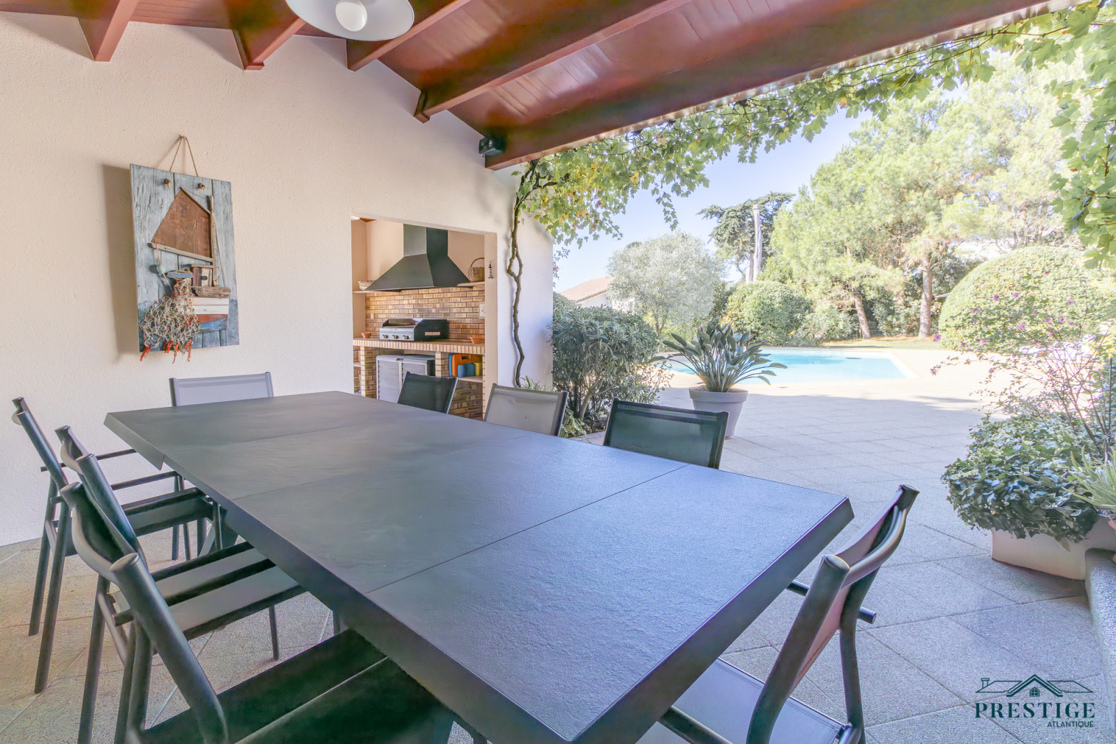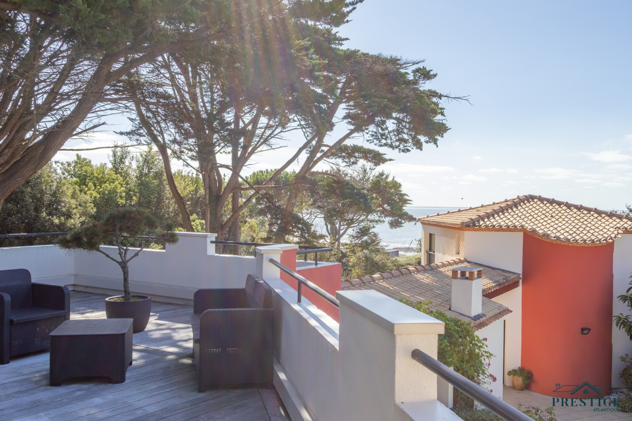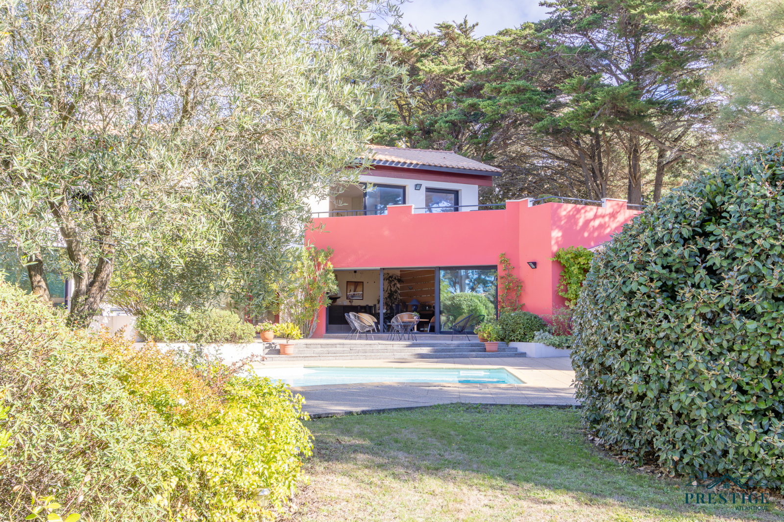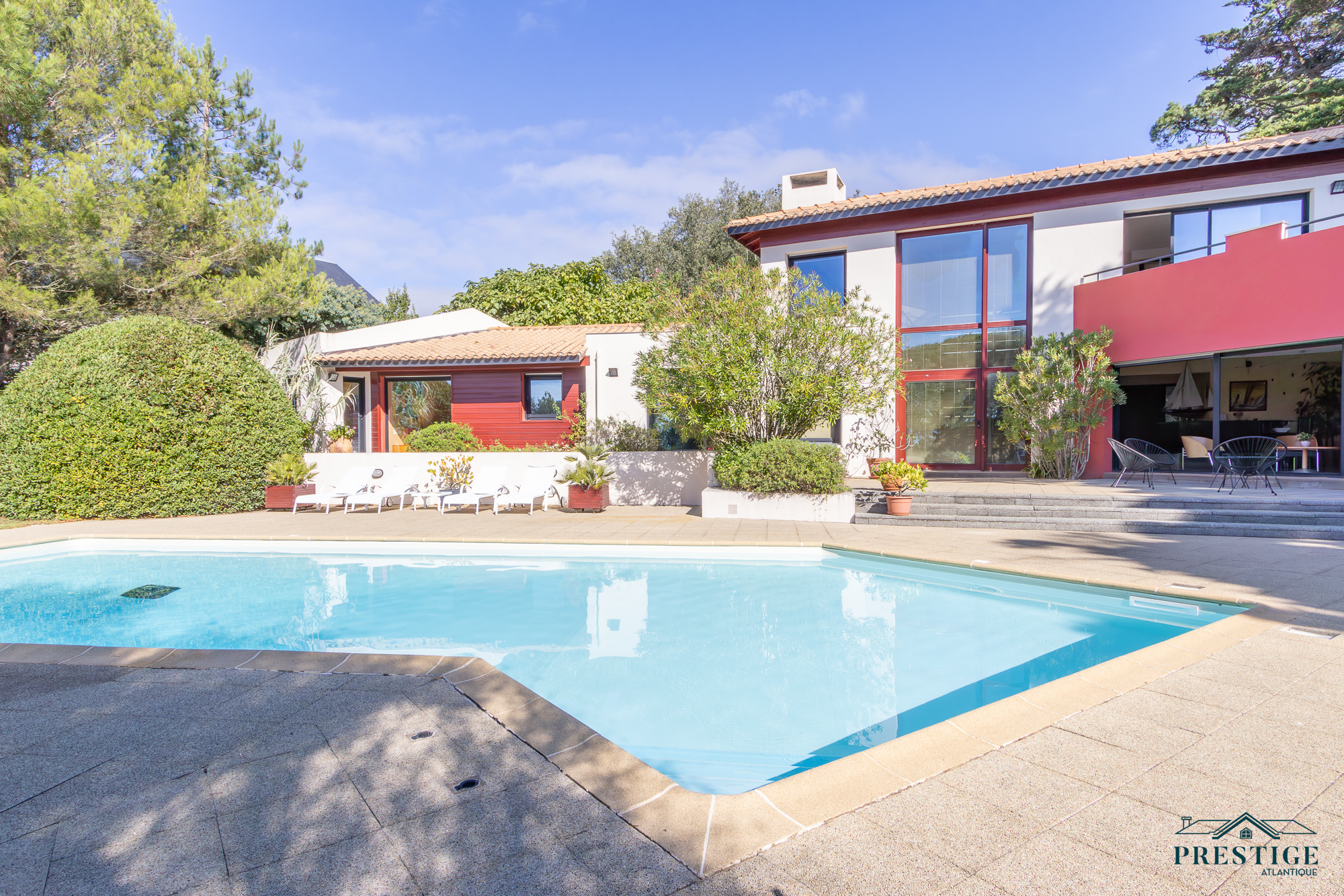 EXCLUSIVITÉ - PRESTIGE ATLANTIQUE. Nichée au cœur d’un secteur prisé et dans un cadre paisible, cette villa d’exception sur deux niveaux se distingue par sa superficie habitable de 408 m² et par son architecture soignée. L’entrée spacieuse vous accueille et s’ouvre sur un vaste espace de vie en open space lumineux comprenant une cuisine aménagée et équipée de qualité, cette pièce de vie parfaitement agencée donne sur une terrasse offrant une vue spectaculaire sur l'océan, le tout prolongé de sa piscine chauffée. L’espace nuit comprend deux chambres spacieuses et une suite parentale, toutes bénéficiant d’un accès direct à l’extérieur. Une élégante salle de bains complète harmonieusement ce niveau. À l’étage, une Master Bedroom avec sa terrasse privée jouit d’une vue mer à couper le souffle. Ce niveau se compose également d'un bureau, d'un salon de lecture et d'une salle de jeux, offrant ainsi une atmosphère intime et conviviale, propice à la détente. Une maison d’amis indépendante de 66 m2 avec deux chambres et une salle de bains ajoute une touche de confort tout en étant parfaitement intégrée à la propriété. Le jardin, véritable havre de paix propose un parc paysager magnifiquement arboré, une cuisine d’été conviviale et une terrasse couverte, idéal pour profiter de moments de partage en toute sérénité. Edifiée sur une parcelle de 2474 m2, un sous-sol avec cave et atelier, un garage ainsi qu’un pool-house viennent parfaire ce bien unique. Cette villa de prestige, rare sur le marché, se distingue par son luxe, sa situation idéale et ses prestations uniques offrant un cadre de vie inégalé. “Les informations sur les risques auxquels ce bien est exposé sont disponibles sur le site Géorisques http://www.georisques.gouv.fr”. Pour plus de renseignements ou pour organiser une visite privée, contactez-nous sans plus attendre, PRESTIGE ATLANTIQUE 02.40.21.91.13. Prix de vente 2 200 000€ FAI dont 5 % d'honoraires agence à la charge de l'acquéreur soit un prix net vendeur de 2 095 238 € (RCS. Saint-Nazaire 897 587 946).