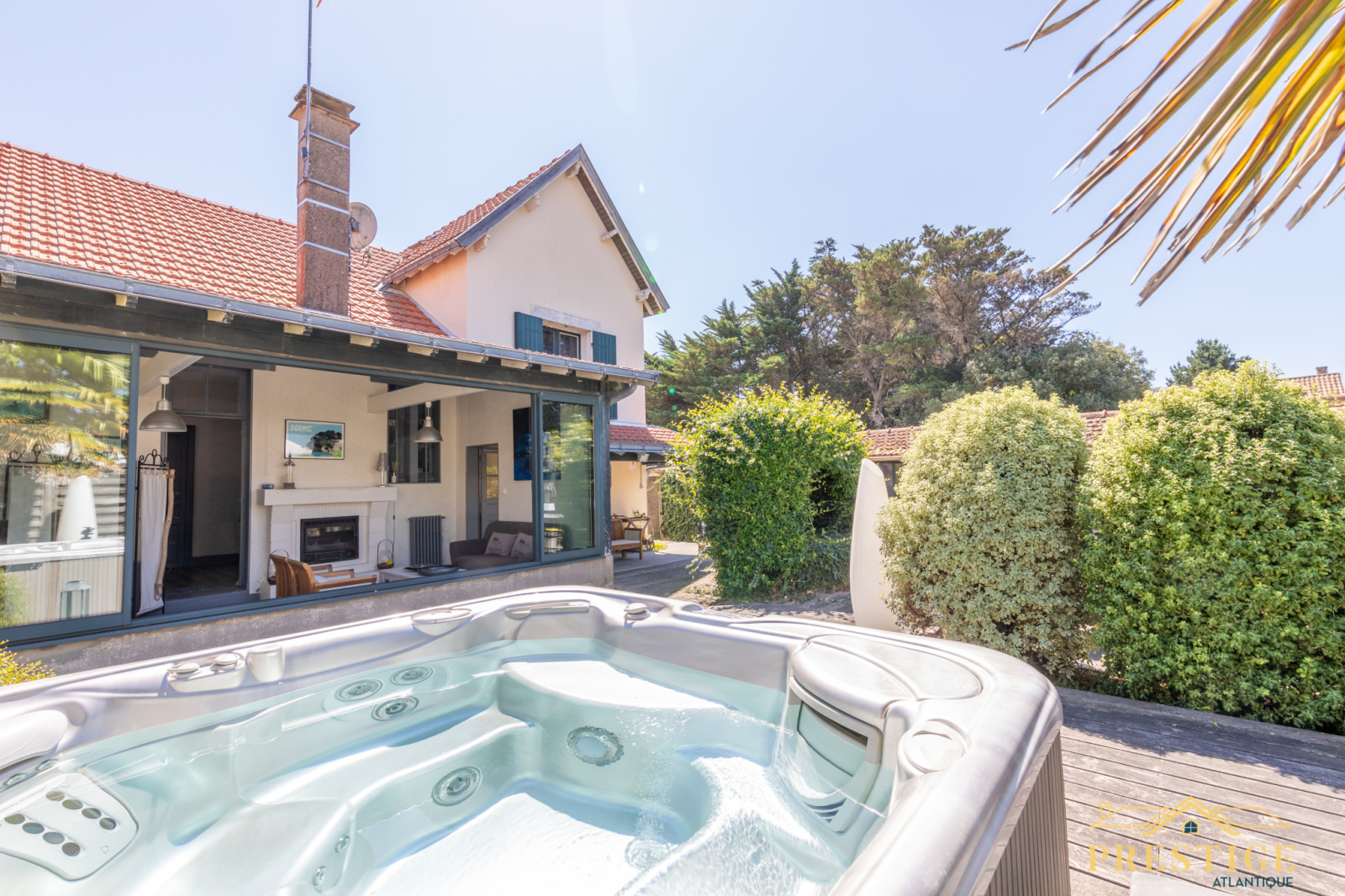 VENDU PAR PRESTIGE ATLANTIQUE. Dans le très recherché quartier de la Birochère, à l'immédiateté des plages, cette magnifique maison balnéaire des années 1905 sur trois niveaux dispose d’une superficie utile de 152m². Le hall d’entrée sur carreaux de ciment s'ouvre sur une double réception composée d’un salon et d’une salle à manger lumineuse agrémentée de son parquet d'origine, en accès direct à un balcon terrasse. Une attention toute particulière pour cette véranda donnant sur une terrasse à la vue imprenable du jardin et sublimé d’un SPA. Une cuisine aménagée équipée et une buanderie viennent compléter ce rez-de-jardin. L’espace nuit se compose sur deux niveaux avec pour chacun d’entre eux, deux chambres et une salle d'eau. Édifiée sur une parcelle close et joliment paysager de 536m², dépendance, atelier et un puits donnent une touche finale à ce bien rare sur le marché à l'emplacement unique. Encore du potentiel pour cette maison alliant l'authenticité et le charme. Dossier de présentation sur demande. “Les informations sur les risques auxquels ce bien est exposé sont disponibles sur le site Géorisques http://www.georisques.gouv.fr”. Pour plus de renseignements ou pour organiser une visite privée, contactez-nous sans plus attendre, PRESTIGE ATLANTIQUE 02.40.21.91.13. Prix de vente 946 400€ FAI dont 4 % d'honoraires agence à la charge de l'acquéreur soit un prix net vendeur de 910 000€ (RCS. Saint- Nazaire 897 587 946).