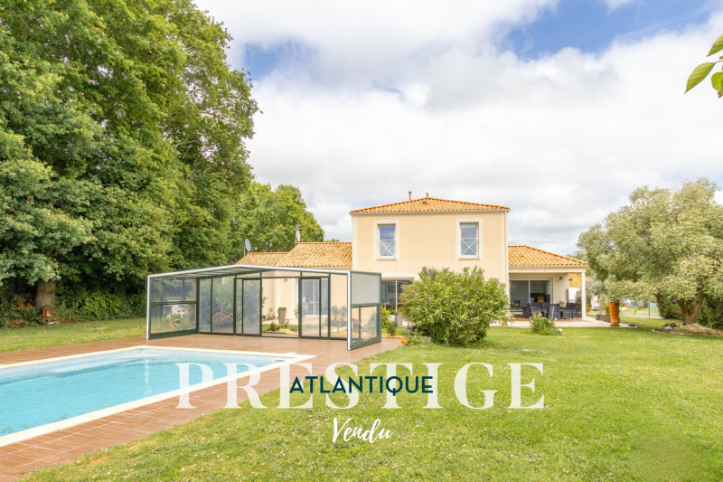VENDU PAR PRESTIGE ATLANTIQUE. Nichée dans son écrin de verdure au bout de son allée privée, à l’immédiateté des commerces et au calme absolu, cette jolie maison de plain-pied dispose d’une superficie habitable de 167m2. Elle offre un hall d’entrée avec placard desservant le salon séjour traversant de lumière orné de moulure, d’une cheminée ouverte et prolongé d’une cuisine parfaitement aménagée équipée, le tout donnant sur une terrasse à l’exposition solaire idéale. L’espace nuit propose trois chambres ainsi qu’une salle de bains et une attention toute particulière pour l’une d’entre elles faisant office de master room bénéficiant d’un accès privatif sur l’extérieur. Une arrière cuisine buanderie, un garage double et un grand sous-sol viennent parfaire la distribution de ce rez-de-jardin. Édifiée sur un magnifique parc de 2800 m2 entièrement clos paysager et arboré de nombreuses essences d’arbres s’articulent autour d’une piscine 11 / 5,5 sécurisée. “Les informations sur les risques auxquels ce bien est exposé sont disponibles sur le site Géorisques http://www.georisques.gouv.fr”. Pour plus de renseignements ou pour organiser une visite privée, contactez-nous sans plus attendre, PRESTIGE ATLANTIQUE 02.40.21.91.13. Prix de vente 735 000€ FAI dont 5 % d'honoraires agence à la charge de l'acquéreur soit un prix net vendeur de 700 000€ (RCS. Saint- Nazaire 897 587 946).