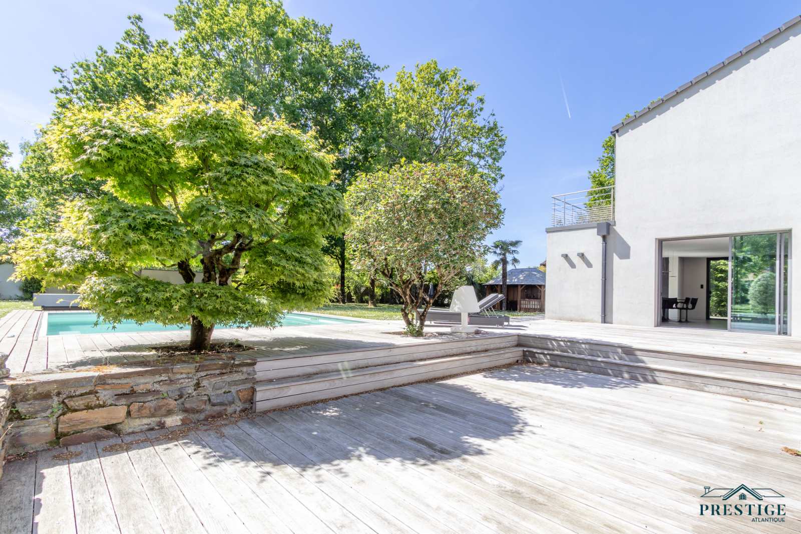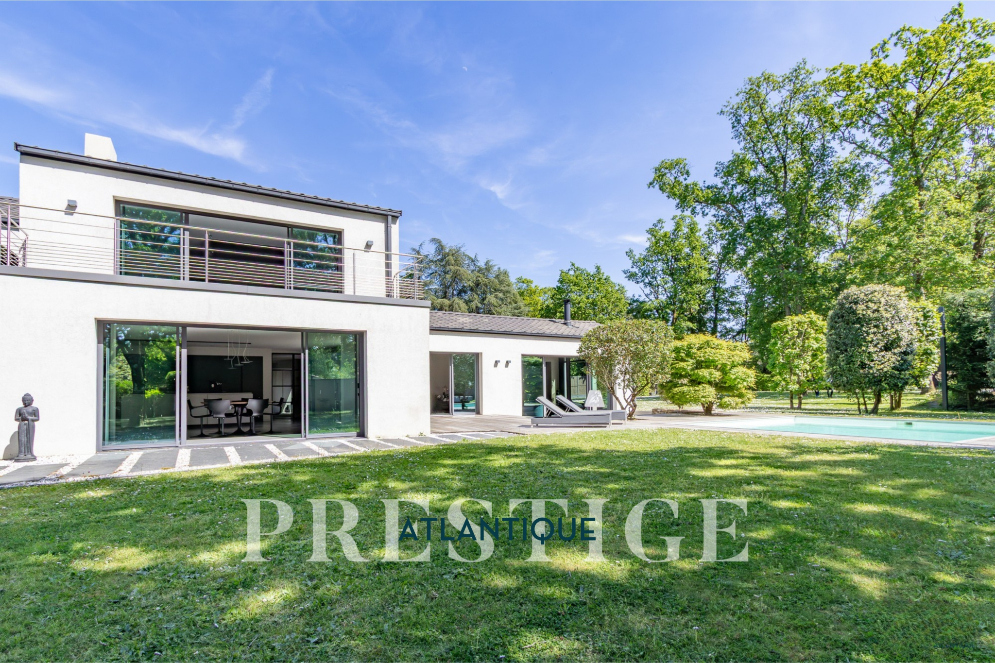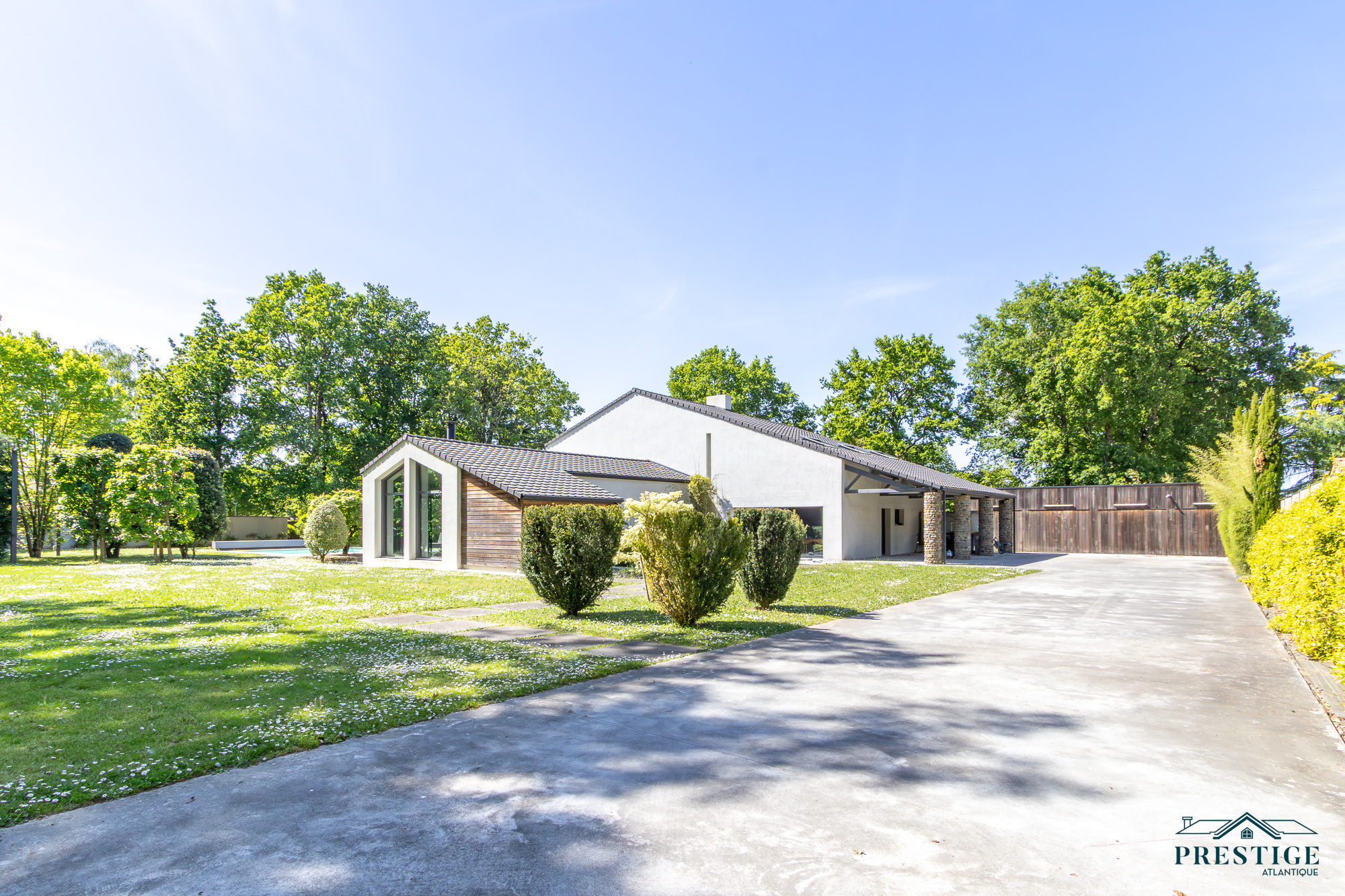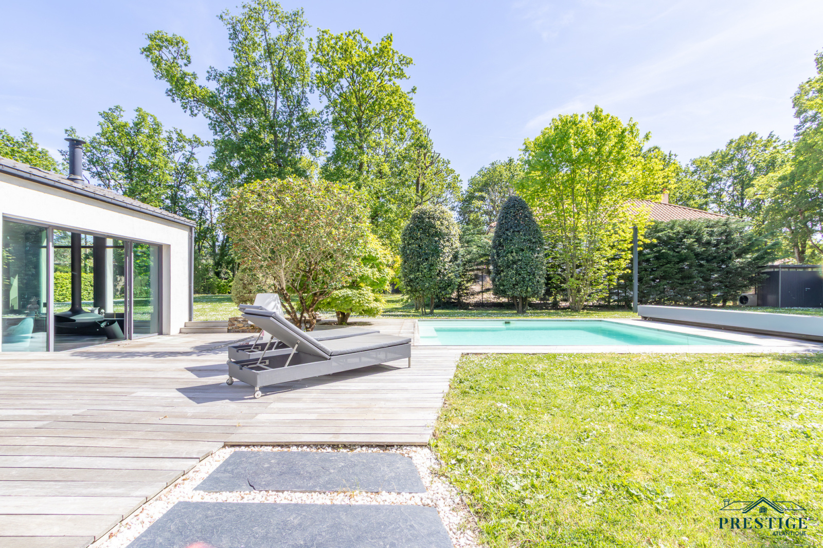 EXCLUSIVITE - PRESTIGE ATLANTIQUE. Dans un environnement privilégié et à l’abri des regards, au sud de Nantes et sur la commune de Basse-Goulaine, cette élégante villa d’architecte entièrement rénovée en 2016 déploie 344 m² habitables. Un hall d’entrée s’ouvre sur une somptueuse pièce de vie avec un espace bar, sublimée par un poêle Gyrofocus. La cuisine aménagée et équipée, aux prestations d’exception (équipements V-Zug et Miele), s’intègre avec élégance à l’ensemble. De larges baies vitrées offrent une vue dégagée et prolongent naturellement l’espace vers une vaste terrasse avec piscine, effaçant les frontières entre intérieur et extérieur. Son espace nuit accueille une master room avec une salle d’eau, un dressing ainsi qu’une terrasse. Un bureau ainsi qu’une arrière cuisine / buanderie complètent le Rez-de-jardin. Un magnifique escalier contemporain permet d’accéder au niveau supérieur ou un vaste palier donne accès à trois chambres avec dressing dont une seconde magnifique master room jouissant d’une immense terrasse privative à la vue imprenable sur le jardin, d’une salle de bains avec douche et un dressing. Une pièce dédiée à la détente ou au cinéma et une salle d’eau vient parfaire l’étage. Edifiée sur un parc paysager de 2 826 m2 entièrement clos, un pavillon d'été, un garage pour quatre voitures ainsi qu’un carport donnent une touche finale à ce bien d’exception. Cette propriété de prestige incarne avec justesse l’alliance subtile d’une architecture contemporaine et d’un art de vivre exclusif au cœur d’un écrin intimiste. Les informations sur les risques auxquels ce bien est exposé sont disponibles sur le site Géorisques http://www.georisques.gouv.fr. Prix de vente 1 596 000€ HAI dont 5 % d'honoraires agence à la charge de l'acquéreur soit un prix net vendeur de 1 520 000€. Prestige-Atlantique. (RCS. Saint-Nazaire 897 587 945 - CPI 44022021000000013) contactez l'agence au 02.40.21.91.13