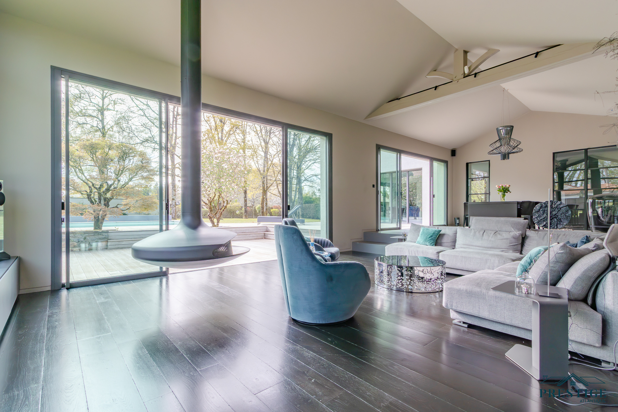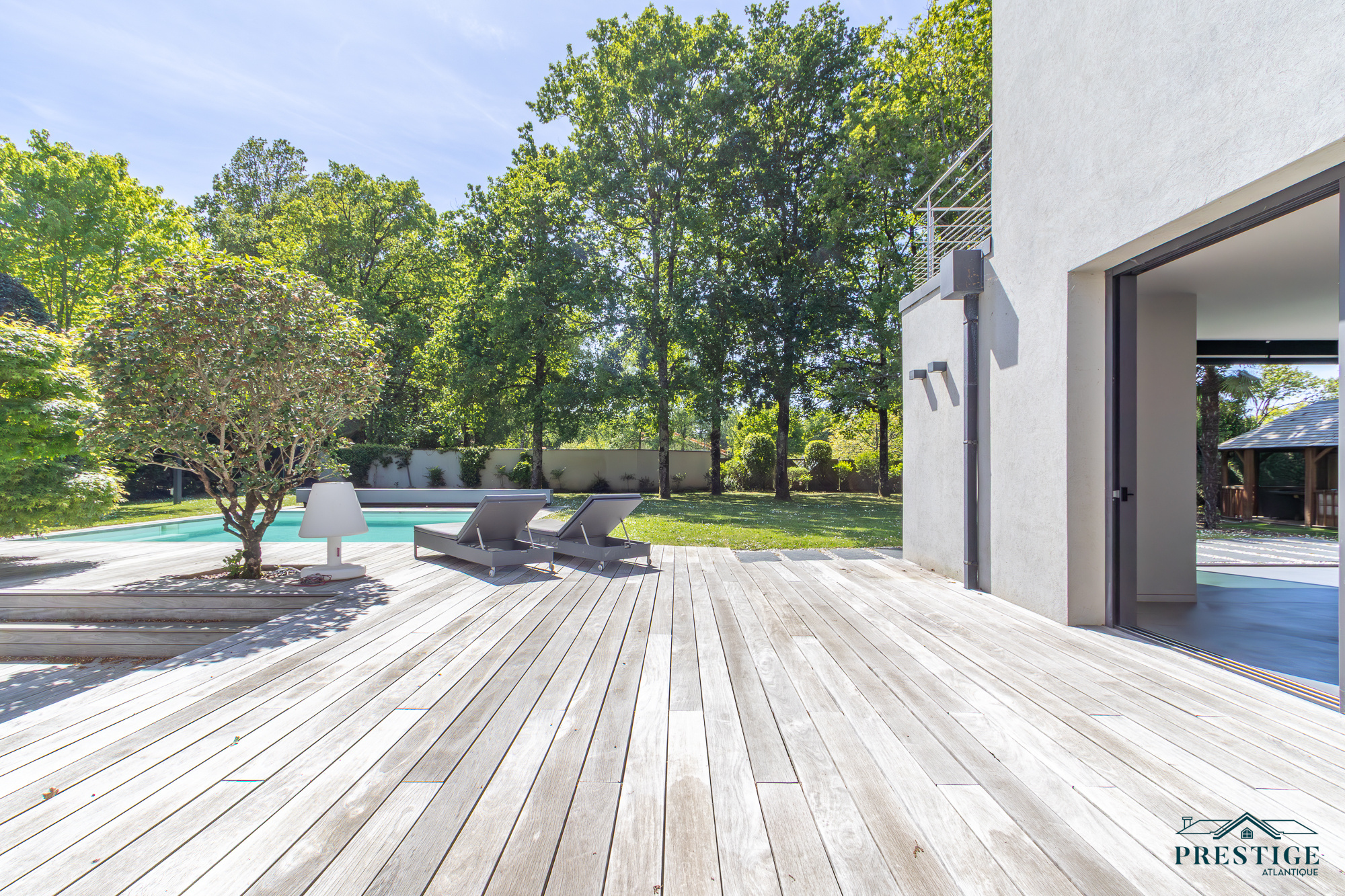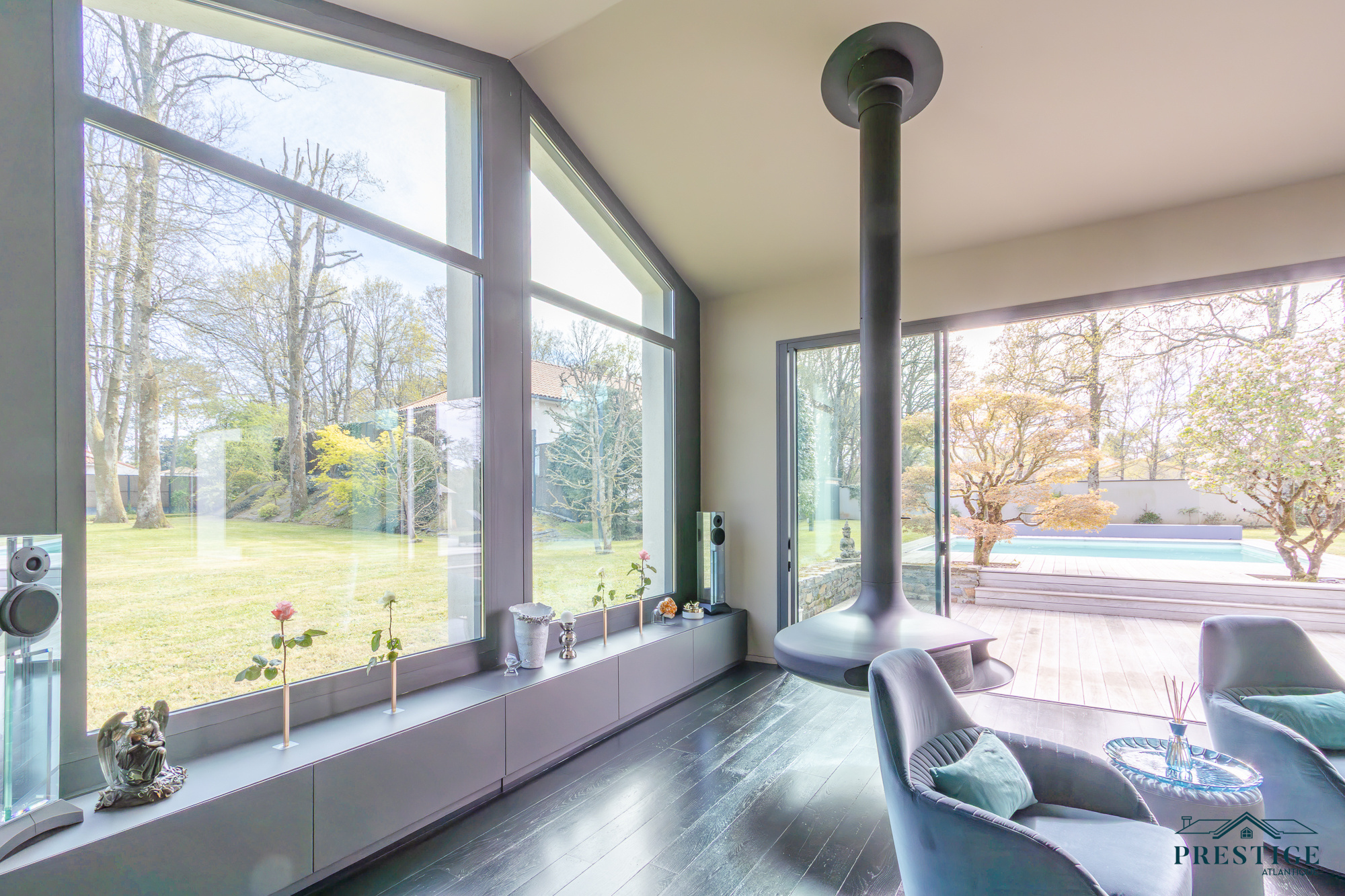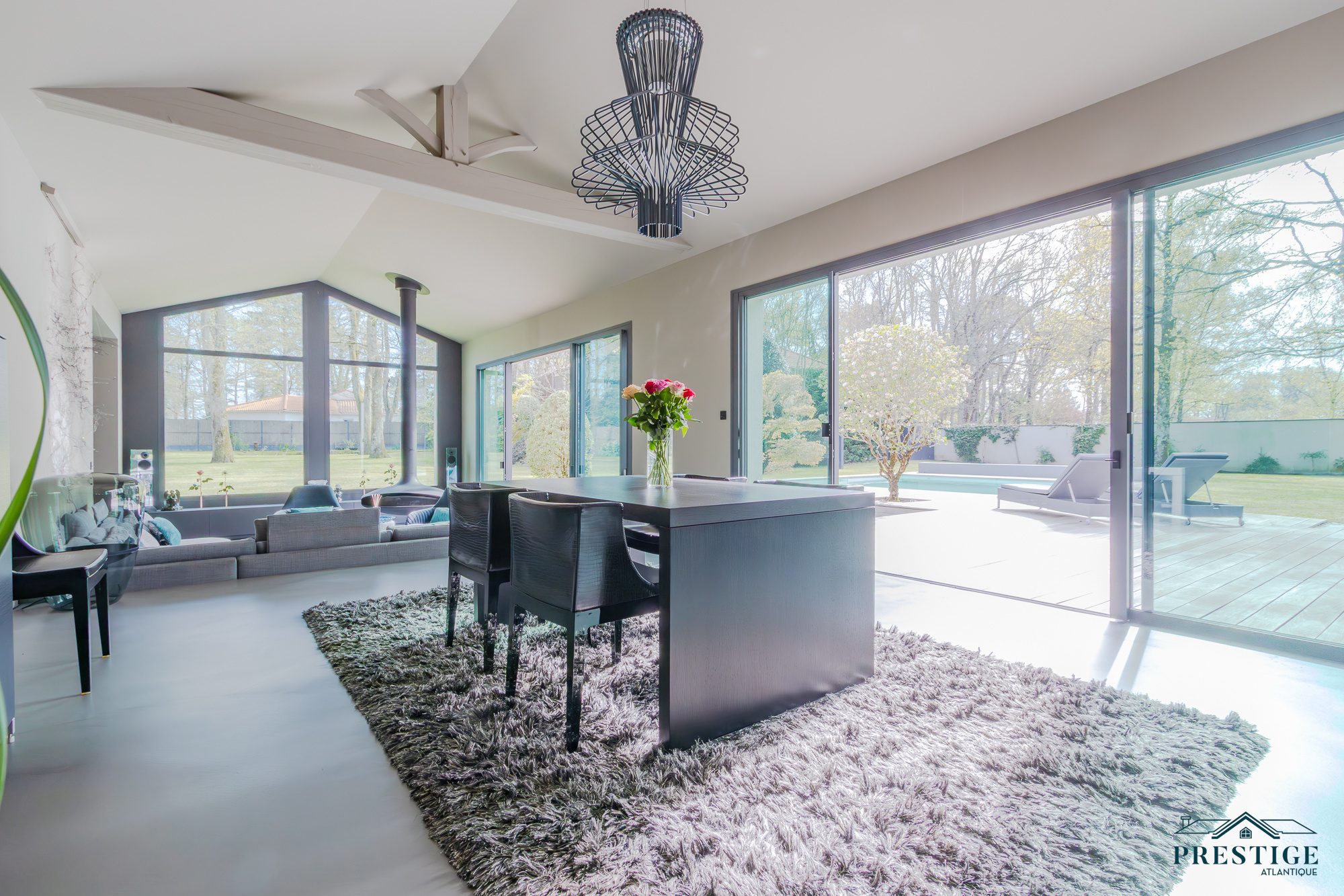 EXCLUSIVITE - PRESTIGE ATLANTIQUE. Dans un environnement privilégié et à l’abri des regards, au sud de Nantes et sur la commune de Basse-Goulaine, cette élégante villa d’architecte entièrement rénovée en 2016 déploie 344 m² habitables. Un hall d’entrée s’ouvre sur une somptueuse pièce de vie avec un espace bar, sublimée par un poêle Gyrofocus. La cuisine aménagée et équipée, aux prestations d’exception (équipements V-Zug et Miele), s’intègre avec élégance à l’ensemble. De larges baies vitrées offrent une vue dégagée et prolongent naturellement l’espace vers une vaste terrasse avec piscine, effaçant les frontières entre intérieur et extérieur. Son espace nuit accueille une master room avec une salle d’eau, un dressing ainsi qu’une terrasse. Un bureau ainsi qu’une arrière cuisine / buanderie complètent le Rez-de-jardin. Un magnifique escalier contemporain permet d’accéder au niveau supérieur ou un vaste palier donne accès à trois chambres avec dressing dont une seconde magnifique master room jouissant d’une immense terrasse privative à la vue imprenable sur le jardin, d’une salle de bains avec douche et un dressing. Une pièce dédiée à la détente ou au cinéma et une salle d’eau vient parfaire l’étage. Edifiée sur un parc paysager de 2 826 m2 entièrement clos, un pavillon d'été, un garage pour quatre voitures ainsi qu’un carport donnent une touche finale à ce bien d’exception. Cette propriété de prestige incarne avec justesse l’alliance subtile d’une architecture contemporaine et d’un art de vivre exclusif au cœur d’un écrin intimiste. Les informations sur les risques auxquels ce bien est exposé sont disponibles sur le site Géorisques http://www.georisques.gouv.fr. Prix de vente 1 596 000€ HAI dont 5 % d'honoraires agence à la charge de l'acquéreur soit un prix net vendeur de 1 520 000€. Prestige-Atlantique. (RCS. Saint-Nazaire 897 587 945 - CPI 44022021000000013) contactez l'agence au 02.40.21.91.13