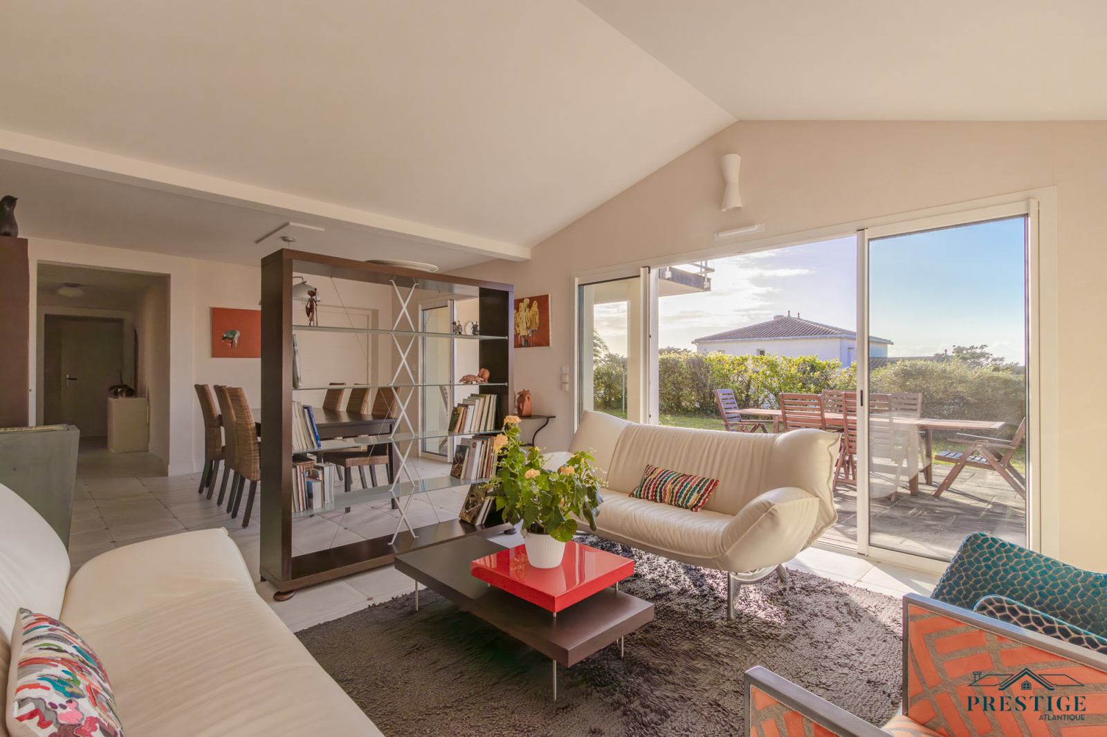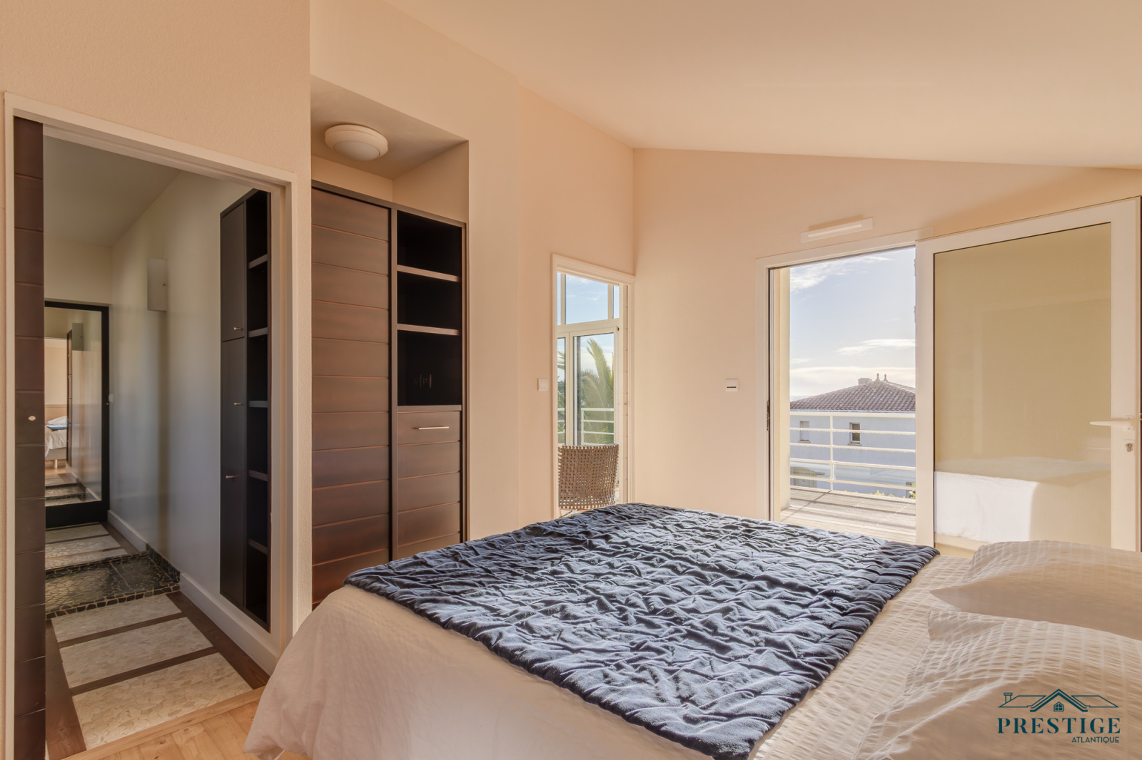 EXCLUSIVITÉ - PRESTIGE ATLANTIQUE. PRÉFAILLES. Avec un emplacement d’exception sur la prestigieuse Corniche de la Source et à proximité immédiate de la plage de Margaret, cette villa d’architecte contemporaine des années 2005, incarne l’alliance parfaite entre élégance et confort moderne, déployée sur deux niveaux et conçue avec un raffinement absolu, elle dispose d'une surface habitable de 160 m². Chaque détail a été pensé pour offrir des prestations haut de gamme : climatisation intégrée, chauffage au sol pour un confort optimal en toutes saisons, et un système d’aspiration centralisée pour une praticité au quotidien. Un hall d'entrée vient desservir un bel espace de vie avec salon et salle à manger agrémenté d'une cuisine aménagée équipée prémium, le tout à la vue imprenable de par ses larges baies vitrées et en accès direct à une vaste terrasse prolongée de son jardin paysager, les frontières entre l'intérieur et l'extérieur s'effacent pour offrir une qualité de vie des plus idéales. L’espace nuit se compose de trois chambres avec placards dont une chambre parentale ouverte sur la grande terrasse. Une salle d’eau et une arrière cuisine/buanderie complètent ce rez-de-jardin. Au niveau supérieur, un palier vient distribuer deux chambres équipées de placards dont une ouvrant sur une spacieuse terrasse, ainsi qu’une salle d’eau commune. Un espace détente avec cheminée prolongé de sa vaste terrasse sublimé du panorama océan vient parfaire l'étage. Édifiée sur une parcelle close et joliment arborée de 1440m2, un grand garage avec sa bagagerie et un double carport donnent une touche finale à ce bien d'exception. Magnifique villa à l'abri des regards conjuguant à merveille la vie famille et la convivialité dans un cadre idyllique et unique. Les informations sur les risques auxquels ce bien est exposé sont disponibles sur le site Géorisques http://www.georisques.gouv.fr “Les informations sur les risques auxquels ce bien est exposé sont disponibles sur le site Géorisques http://www.georisques.gouv.fr”. Pour plus de renseignements ou pour organiser une visite privée, contactez-nous sans plus attendre, PRESTIGE ATLANTIQUE 02.40.21.91.13. Prix de vente 945 000€ FAI dont 5 % d'honoraires agence à la charge de l'acquéreur soit un prix net vendeur de 900 000€ (RCS. Saint- Nazaire 897 587 946).