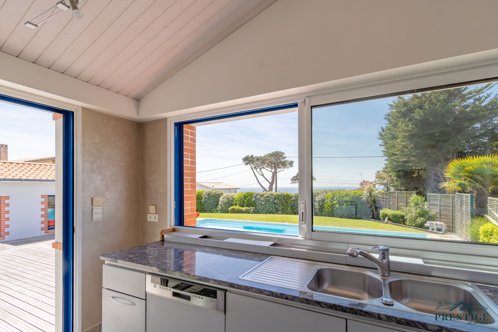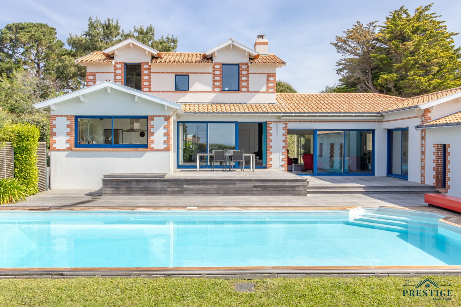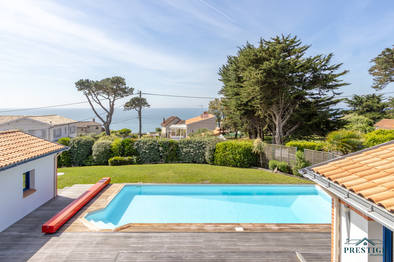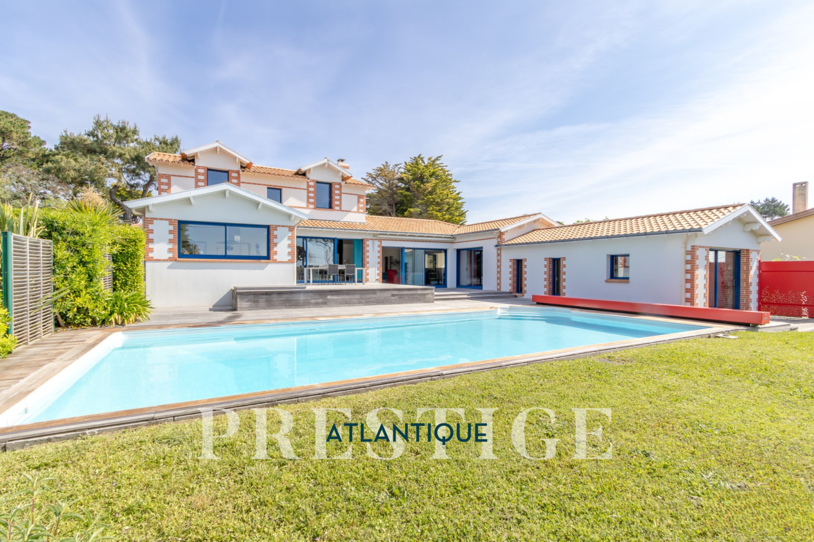 EXCLUSIVITÉ - PRESTIGE ATLANTIQUE. RARE SUR LE MARCHÉ. Vue imprenable sur l’océan, cette villa de style contemporain, signée par l'architecte Guillaumet dispose d’une superficie habitable de 220 m². Une majestueuse porte d'entrée sur pivot ouvre sur un double espace de vie aux volumes généreux doté de grandes baies vitrées offrant une vue imprenable sur la piscine et la mer. La cuisine indépendante mais ouverte, avec son arrière cuisine conjugue fonctionnalité et convivialité, le tout en accès direct au séjour et à la terrasse. L’espace nuit de plain-pied offre une suite parentale comprenant salle de bains, dressing et bureau, ainsi qu'une seconde suite et une troisième chambre, toutes deux ouvertes sur un patio vitré baigné de lumière. À l’étage, un palier dessert deux belles chambres profitant d’une vue imprenable sur la mer, accompagnées d’une salle d’eau. Édifiée sur un terrain clos, arboré et paysager de 1316 m², un patio intimiste, un garage double, une cave et une dépendance complètent ce bien rare. Cette villa d’exception séduit par son style typique de la Côte de Jade, un parfait équilibre entre maison familiale et résidence de vacances en bord de mer. Des prestations soignées et de beaux volumes au sein d’un environnement calme et privilégié. “Les informations sur les risques auxquels ce bien est exposé sont disponibles sur le site Géorisques http://www.georisques.gouv.fr”. Pour plus de renseignements ou pour organiser une visite privée, contactez-nous sans plus attendre, PRESTIGE ATLANTIQUE 02.40.21.91.13. Prix de vente 1 596 000€ FAI dont 5 % d'honoraires agence à la charge de l'acquéreur soit un prix net vendeur de 1 520 000€ (RCS. Saint- Nazaire 897 587 946).