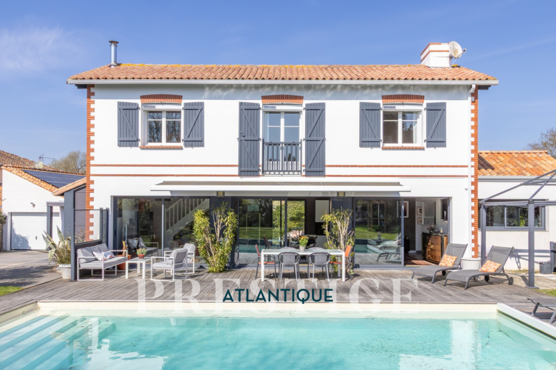 EXCLUSIVITÉ - PRESTIGE ATLANTIQUE. À seulement quelques pas du marché, des plages et des commerces, cette propriété d’exception de 323 m² utiles à l’abri des regards est une véritable perle rare. Elle offre tout le charme d’un domaine privé à l’ambiance balnéaire préservée, réparti sur deux parcelles indépendantes avec entrées séparés et en plein cœur de Préfailles. L’élégance architecturale de la villa principale séduit par ses volumes traversants et son authenticité intacte. Au rez-de-jardin, une somptueuse double réception baignée de lumière naturelle s’ouvre sur une terrasse en pierre à la vue imprenable d’un parc joliment arboré, sublimé d’ un aperçu Océan. Une cuisine aménagée avec arrière-cuisine, une pièce de lecture et deux chambres dont une suite parentale confirment une vie de plain-pied à la fois fonctionnel et raffiné. À l’étage, deux chambres supplémentaires dont l’une avec balcon surplombant la mer ainsi qu'une salle de bains viennent parfaire la distribution nuit de ce niveau. Atout rare et convoité, une seconde maison totalement indépendante accueille deux appartements de charme pensés pour recevoir en toute intimité ou envisager une activité d’accueil. Chacun bénéficie d’une vue dégagée sur le parc clos et paysager, dans un esprit de calme absolu. Edifié sur un terrain double de 1 343 m², agrémenté de nombreux espaces extérieurs : un double carport, deux portails, un garage à vélos, des places de stationnement et une dépendance supplémentaire donnent une touche finale à ce bien de Prestige.“Les informations sur les risques auxquels ce bien est exposé sont disponibles sur le site Géorisques http://www.georisques.gouv.fr”. Pour plus de renseignements ou pour organiser une visite privée, contactez-nous sans plus attendre, PRESTIGE ATLANTIQUE 02.40.21.91.13. Prix de vente 1 495 000€, les honoraires sont à charge vendeur (RCS. Saint- Nazaire 897 587 946).