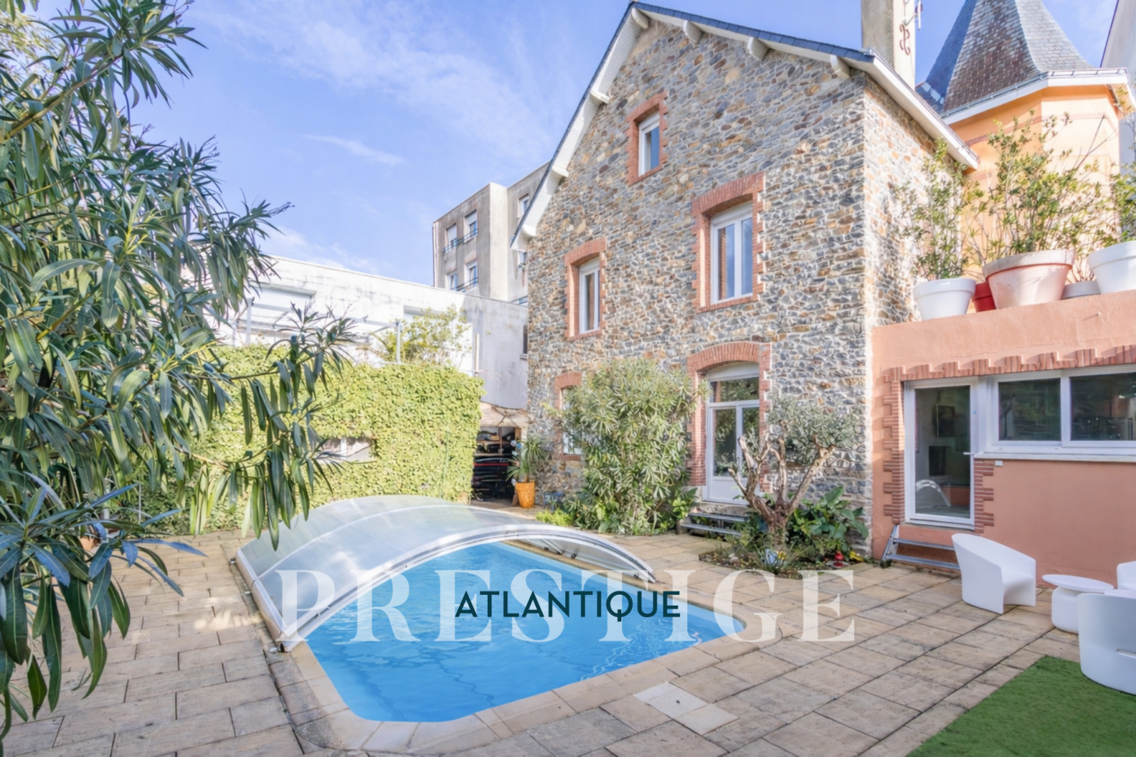 EXCLUSIVITÉ - PRESTIGE ATLANTIQUE. Située au cœur du centre-ville, à proximité du Jardin des Plantes et du front de mer, cette maison de caractère joliment rénovée déploie 260 m² habitables. Le hall d’entrée s’ouvre sur une triple réception sur parquet prolongée par une vaste cuisine aménagée et équipée magnifiée par les pierres apparentes de la tourelle et complétée d’une arrière-cuisine fonctionnelle avec accès direct sur l’extérieur. L’ensemble s’articule harmonieusement vers une terrasse puis un jardin paysager sublimé d’une piscine chauffée. Une suite parentale de plain-pied dotée de son dressing et de sa salle de bains privative vient parfaire le confort et l’élégance de ce niveau. Véritable atout complémentaire : Un roof-top à l’abri des regards surplombant la piscine, prolongé par une agréable terrasse d’été dotée d’un salon couvert offre un plus à l’extérieur. À l’étage, l’espace nuit se compose de quatre chambres avec placards dont deux bénéficiant d’un balcon, ainsi qu’une salle d’eau. Une attention toute particulière pour le dernier étage faisant office de salle de cinéma, deux chambres supplémentaires complètent ce niveau. Édifiée sur une parcelle close, paysager de 574 m2, places de stationnements sécurisées au sein de la propriété et une dépendance de 25 m² donnent une touche finale à ce bien. Cette demeure de caractère, rare sur le marché, conjugue avec élégance emplacement privilégié, volumes généreux et prestations de qualité. Une opportunité exclusive signée PRESTIGE ATLANTIQUE pour les amateurs de biens uniques.“Les informations sur les risques auxquels ce bien est exposé sont disponibles sur le site Géorisqueshttp://www.georisques.gouv.fr”. Pour plus de renseignements ou pour organiser une visite privée, contactez-nous sans plus attendre, PRESTIGE ATLANTIQUE 02.40.21.91.13, (RCS. Saint- Nazaire 897 587 946). Prix de vente 799 000€, les honoraires d'agence sont à la charge du vendeur.