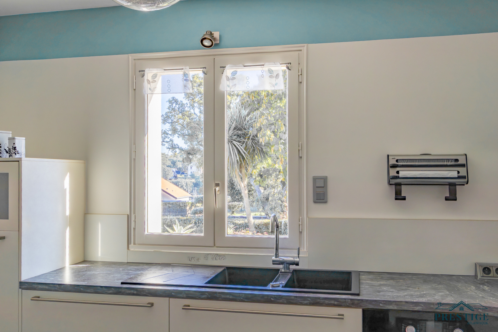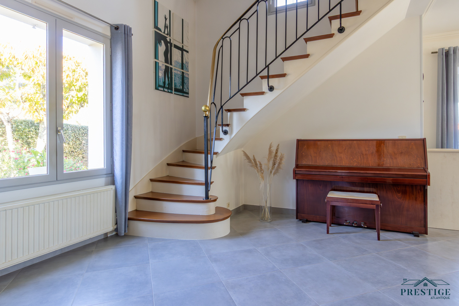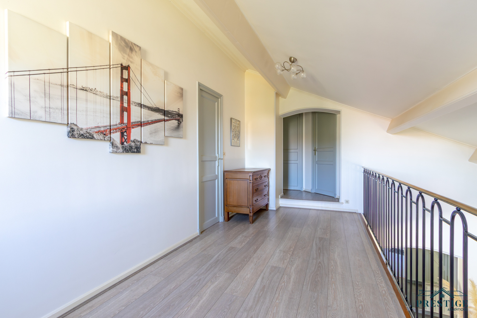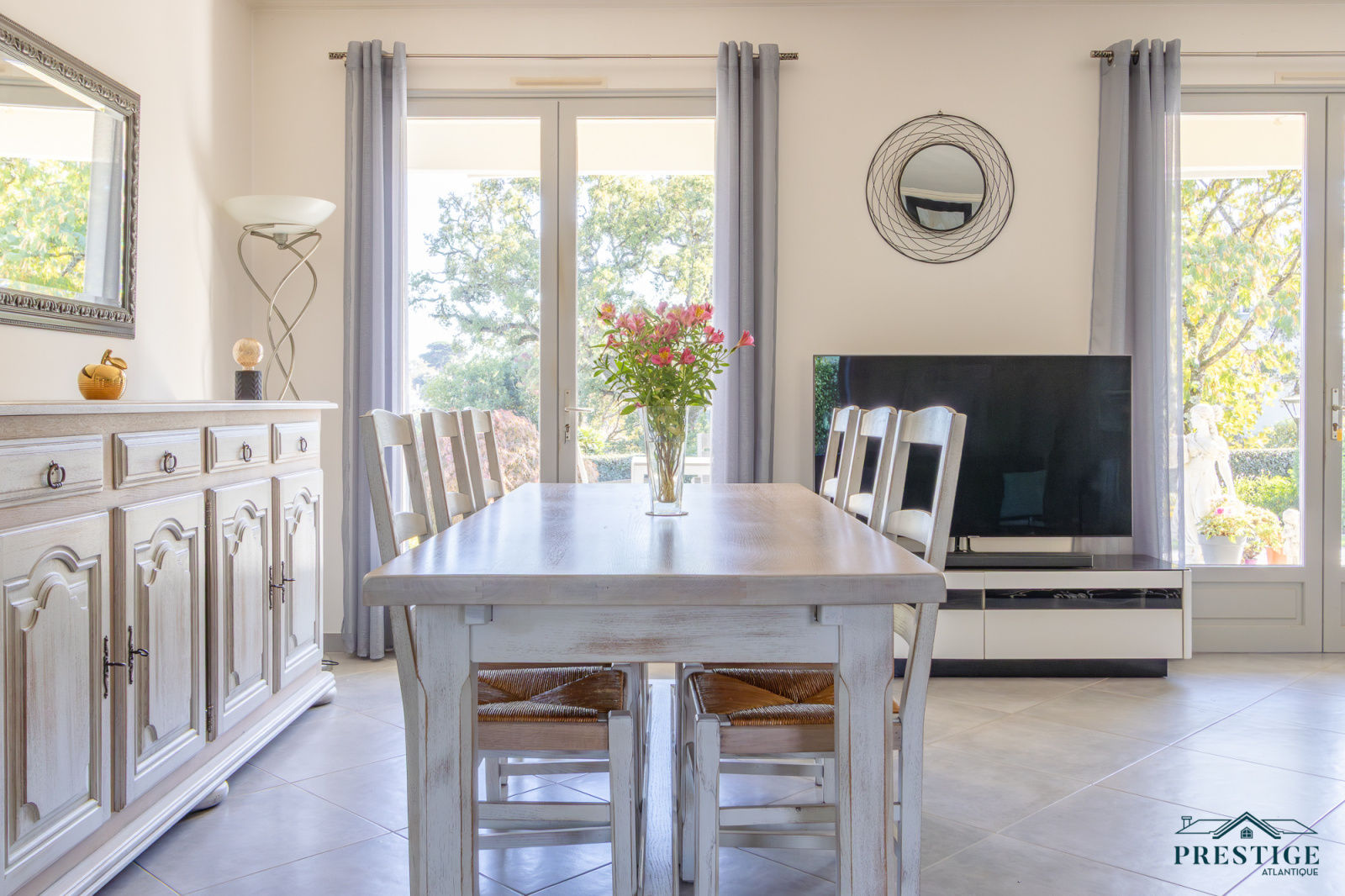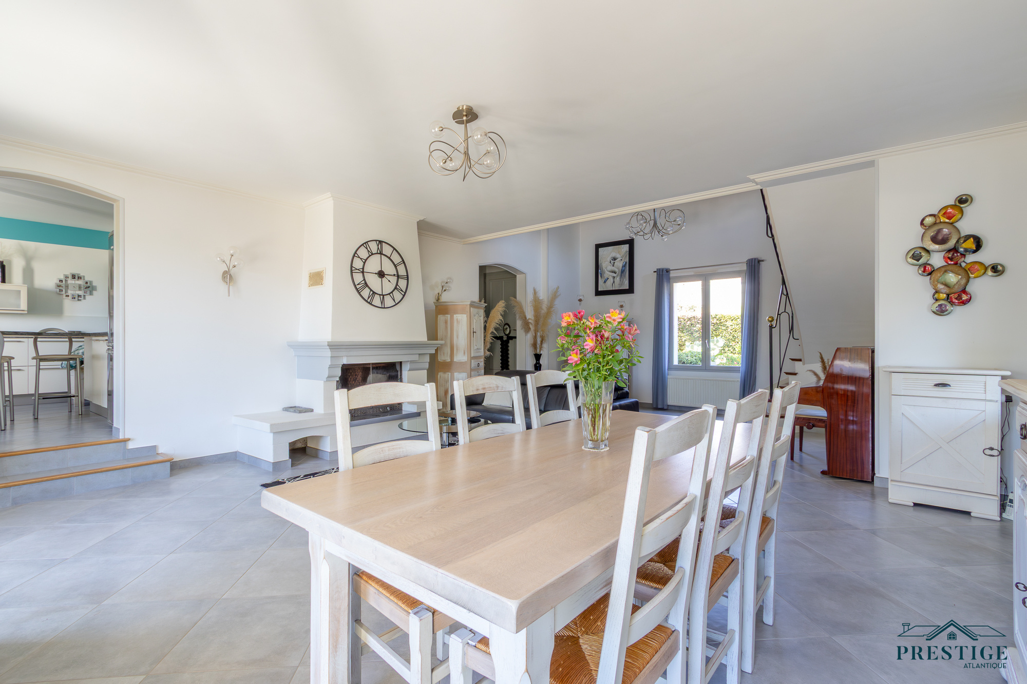 EXCLUSIVITÉ - PRESTIGE ATLANTIQUE. Nichée sur l’avenue la plus convoitée de Pornic, à proximité immédiate du château et du vieux port, cette villa développe 183 m² habitables aux espaces harmonieux et soignés, dans un environnement rare, recherché et au calme absolu. Dès l’entrée, le ton est donné : un vaste séjour baigné de lumière avec cheminée, prolongé d'une cuisine premium offrant un aperçu mer et une vue unique sur les mâts des bateaux, symbole d’un emplacement d’exception. L’ensemble s’ouvre sur une terrasse ensoleillée au panorama d’un joli jardin paysager. L’espace parentale se compose d'une chambre ainsi qu’une salle d’eau et vient confirmer la vie de plain-pied. À l’étage, une mezzanine optimise les volumes et distribue trois chambres supplémentaires dont deux avec dressings intégrés, ainsi qu’une salle de bain. Édifiée sur une parcelle close et arborée de 574 m2, un garage et un atelier viennent parfaire les prestations de ce bien. Une opportunité unique sur le secteur le plus convoité de Pornic. La copropriété de 93 lots dispose de deux terrains de tennis, d’une piscine et d’un gardien, apportant un véritable plus au cadre de vie balnéaire de cette villa de prestige. Les charges annuelles sont de 1859€, sans aucune procédure en cours au sein de la copropriété. “Les informations sur les risques auxquels ce bien est exposé sont disponibles sur le site Géorisques http://www.georisques.gouv.fr”. Pour plus de renseignements ou pour organiser une visite privée, contactez-nous sans plus attendre, PRESTIGE ATLANTIQUE 02.40.21.91.13. Prix de vente 892 500€ FAI dont 5 % d'honoraires agence à la charge de l'acquéreur soit un prix net vendeur de 850 000 € (RCS. Saint- Nazaire 897 587 946).