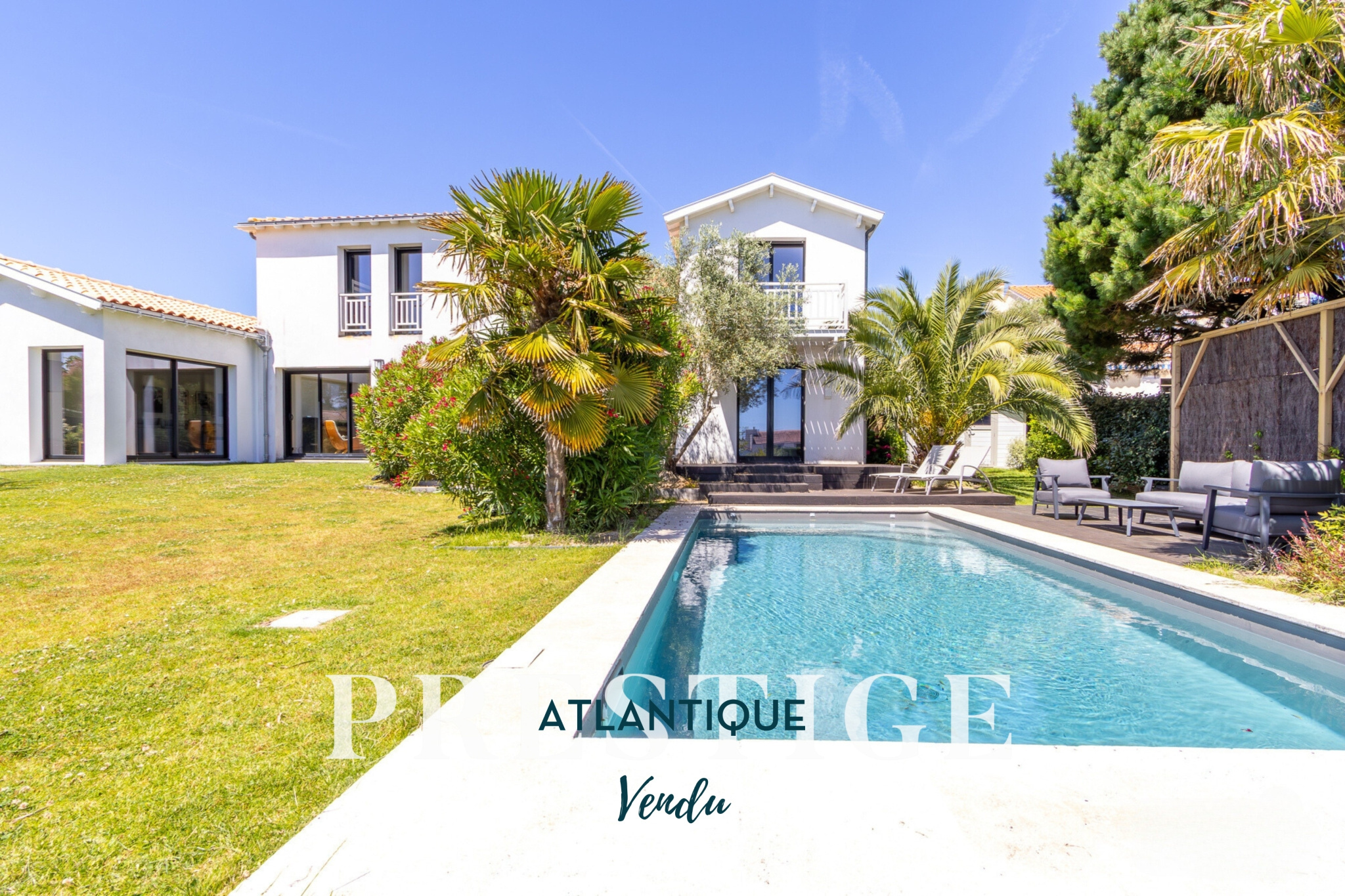 VENDU PAR PRESTIGE ATLANTIQUE. Au sein d’un environnement exclusif à quelques pas de l’océan, cette villa d’architecte de 223 m² séduit par son design épuré et ses prestations haut de gamme. Au rez-de-chaussée, une spacieuse pièce de vie aux volumes généreux sublimée par de grandes baies vitrées bénéficie d’une lumière naturelle abondante tout au long de la journée. Cet espace élégant et convivial s’ouvre avec fluidité sur une terrasse raffinée agrémentée d’une piscine aux lignes modernes et d’un jardin paysager soigneusement structuré offrant un cadre de vie exceptionnel. La cuisine sur-mesure, aux finitions haut de gamme et entièrement équipée, allie esthétisme et fonctionnalité. Une suite parentale intime et élégante, disposant d’un dressing sur mesure et d’une salle d’eau privative complète cette vie de plain pied. À l’étage, une mezzanine lumineuse dessert trois chambres dont une somptueuse suite avec dressing, salle d’eau et balcon vue mer. Édifiée sur un terrain de 739 m², cette propriété rare bénéficie d’un emplacement idéal, proche de la plage des Sablons et du coeur de Sainte Marie Sur Mer. Les informations sur les risques auxquels ce bien est exposé sont disponibles sur le site Géorisques http://www.georisques.gouv.fr”. Pour plus de renseignements ou pour organiser une visite privée, contactez-nous sans plus attendre, PRESTIGE ATLANTIQUE 02.40.21.91.13. Prix de vente 1 295 000€, les honoraires agence sont à la charge du vendeur. (RCS. Saint- Nazaire 897 587 946).
