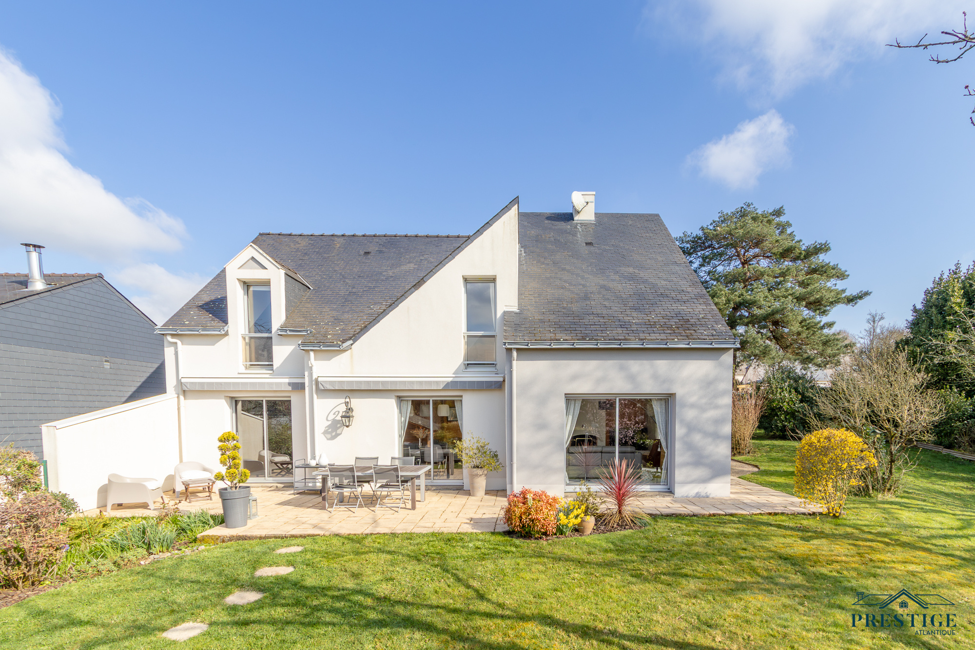 EXCLUSIVITÉ - PRESTIGE ATLANTIQUE. À l'immédiateté du centre-bourg, dans un environnement calme et offrant une vue imprenable sur la nature, cette charmante maison sur deux niveaux dispose d’une superficie habitable de 172 m². Une belle entrée cathédrale avec placard vestiaire dessert une pièce de vie lumineuse agrémentée d’une cheminée ouverte et prolongée d’une cuisine aménagée équipée, le tout en accès direct à la terrasse jouissant d’un panorama sur la campagne. Une chambre avec sa propre salle d'eau, vient parfaire la vie de plain-pied. L'étage propose quatre chambres avec placard dont une attention toute particulière pour la suite parentale bénéficiant de son propre dressing, sa salle de bains et prolongé d'un balcon terrasse, une salle d'eau complète ce niveau. Édifiée sur une parcelle close joliment paysagée et arborée de 571 m², un garage avec cave ainsi qu'un abri de jardin ne font que confirmer les prestations de cette propriété à la situation géographique recherchée. “Les informations sur les risques auxquels ce bien est exposé sont disponibles sur le site Géorisques http://www.georisques.gouv.fr”. Prix de vente 579 900 € les honoraires agence sont à la charge du vendeur. Pour plus de renseignements ou pour organiser une visite privée, contactez-nous sans plus attendre, PRESTIGE ATLANTIQUE 02.40.21.91.13.