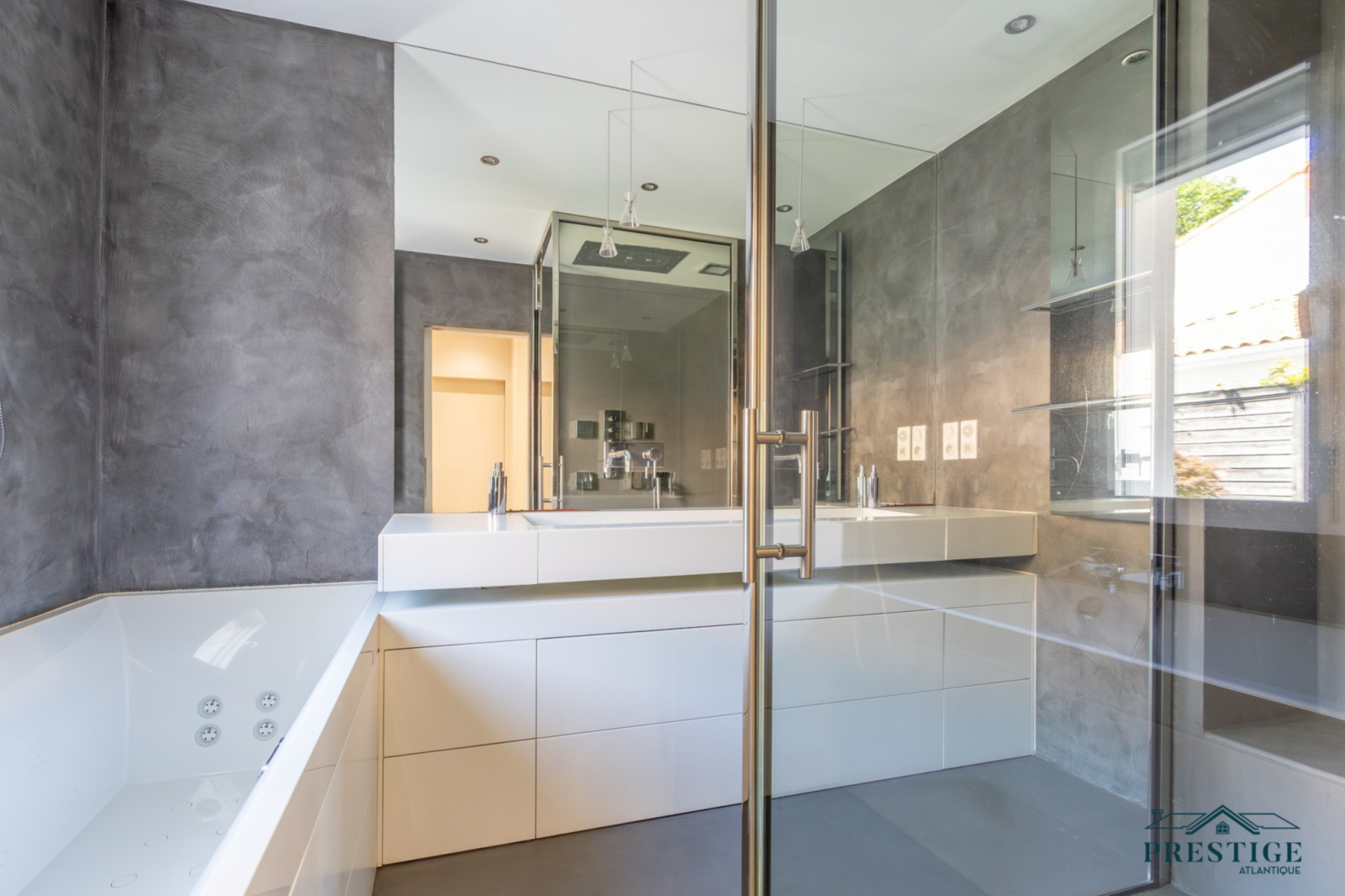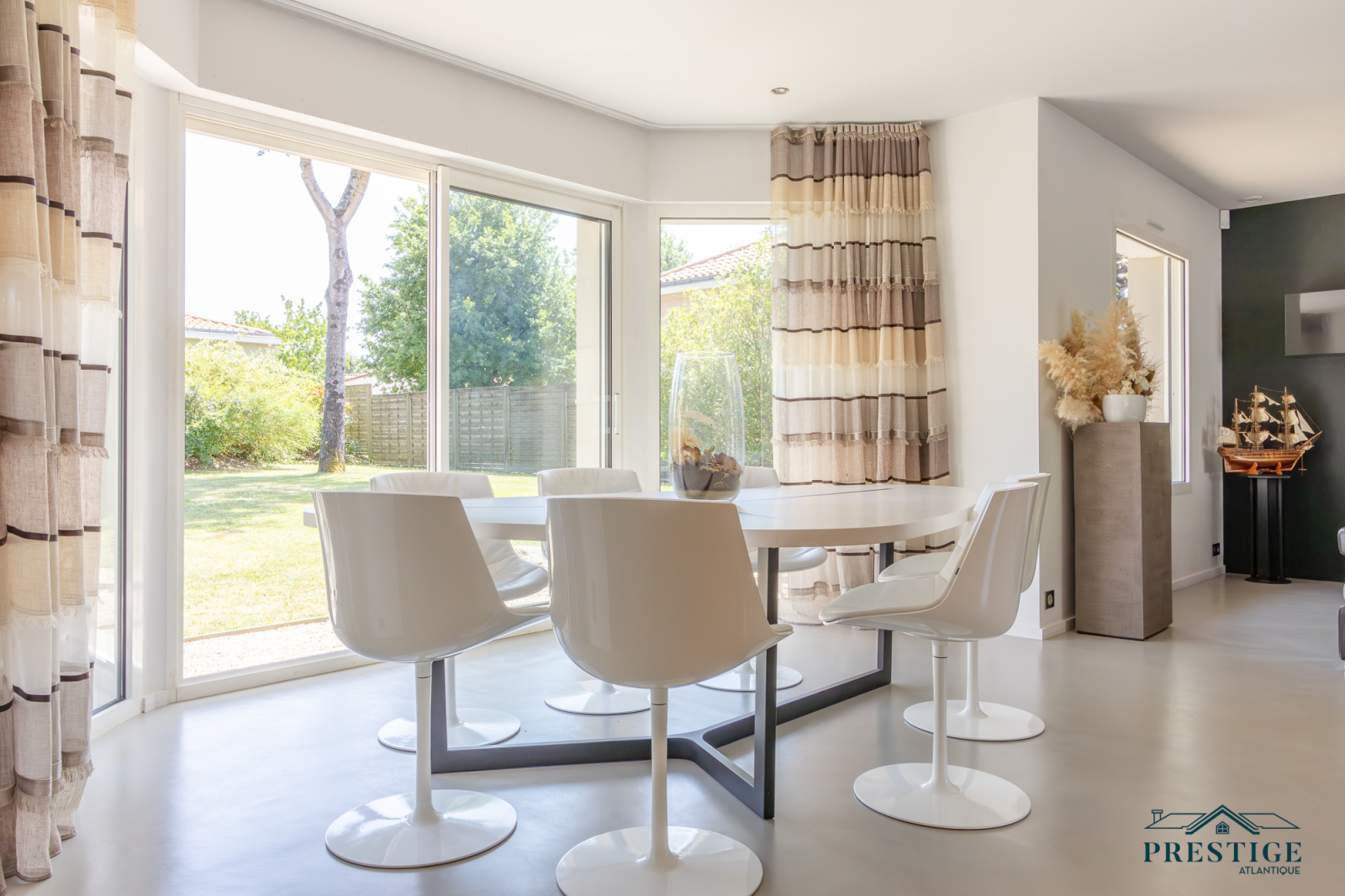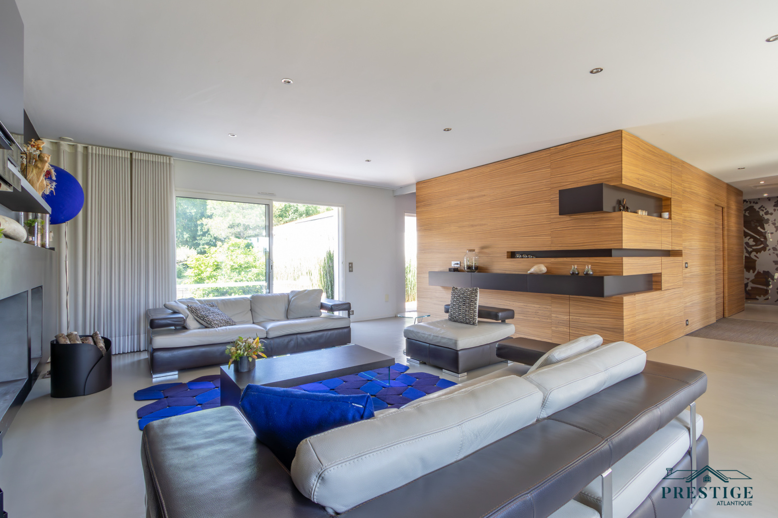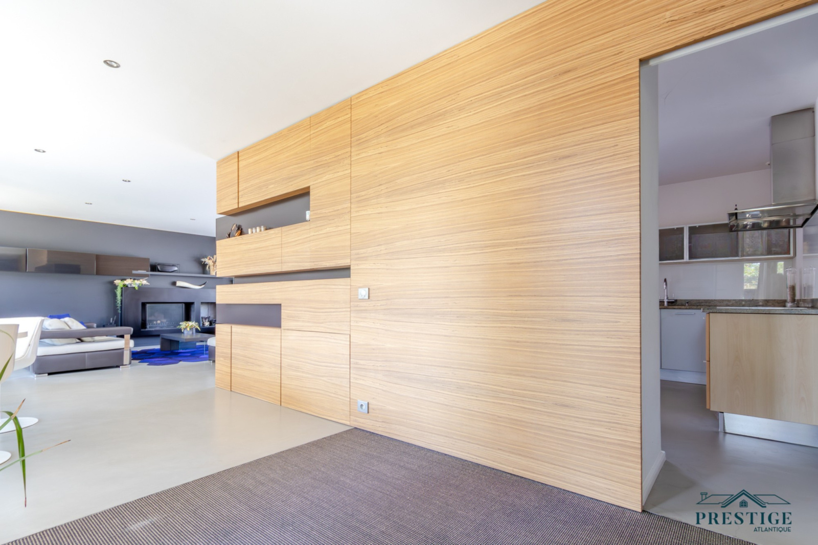 EXCLUSIVITE - PRESTIGE ATLANTIQUE. Nichée au cœur d’un environnement résidentiel verdoyant, à deux pas des commerces, cette villa d'exception de 293 m² habitables entièrement repensée par un architecte allie élégance contemporaire et raffinement absolu. L’entrée s’ouvre sur une somptueuse pièce de vie aux volumes généreux baignée de lumière naturelle dotée d’un mobilier sur mesure et d’une cheminée contemporaine, de vastes baies vitrées effacent la frontière intérieur/extérieur ouvrant sur une terrasse et sur un joli jardin paysager sublimé de sa piscine. Une cuisine haut de gamme avec espace repas et de nombreux rangements intégrés et une arrière-cuisine discrète vient parfaire ce lieu de vie. Côté nuit, cinq chambres confortables avec placards sur mesure, dont une suite parentale aux prestations premium : dressing et salle de bains attenante. Pensée dans les moindres détails, la villa intègre un bureau, une lingerie et une salle de fitness. Véritable atout supplémentaire, la maison d’invités indépendante parfaitement équipée et idéalement située près de l’entrée principale. Édifiée sur une parcelle de 2 702 m², un double garage donne une touche finale à ce bien unique. “Les informations sur les risques auxquels ce bien est exposé sont disponibles sur le site Géorisques http://www.georisques.gouv.fr”. Pour plus de renseignements ou pour organiser une visite privée, contactez-nous sans plus attendre, PRESTIGE ATLANTIQUE 02.40.21.91.13. Prix de vente 899 000€ FAI les honoraires sont à la charge du vendeur (RCS. Saint- Nazaire 897 587 946).