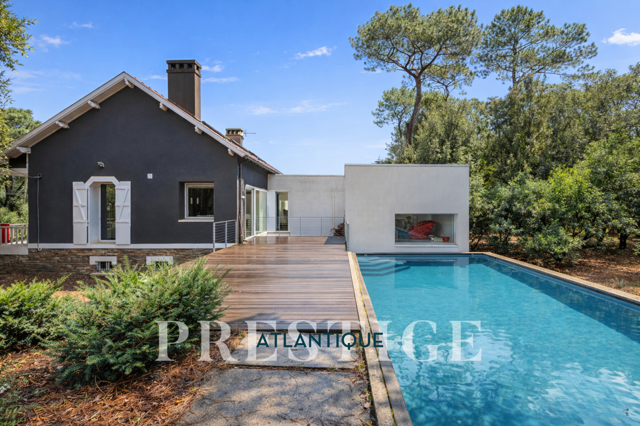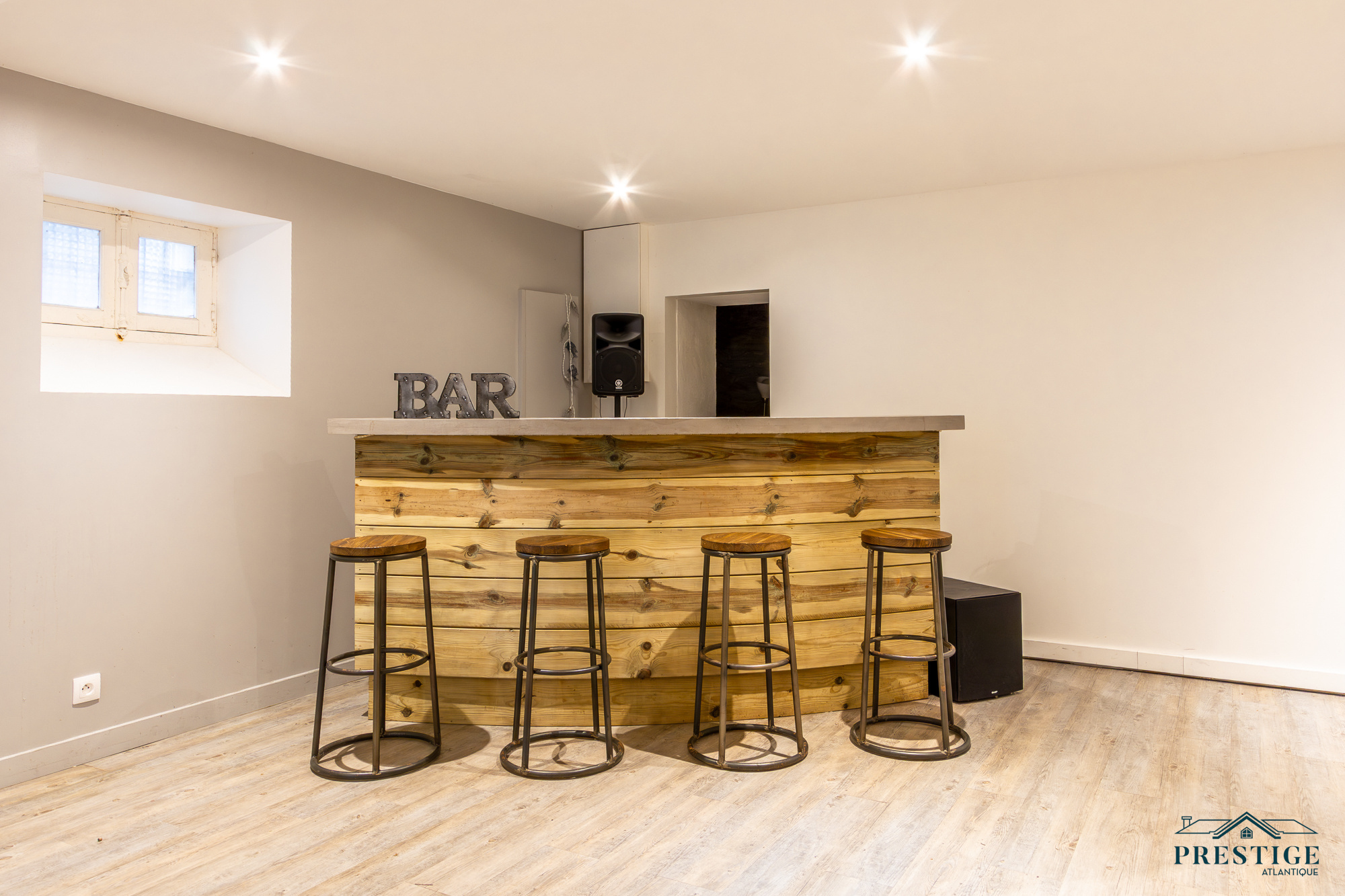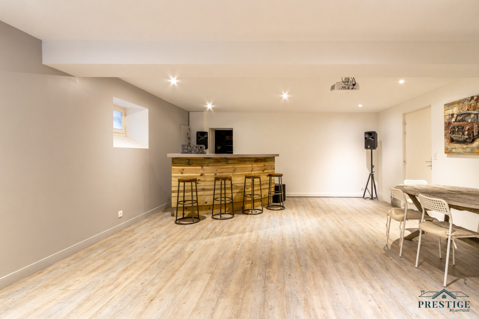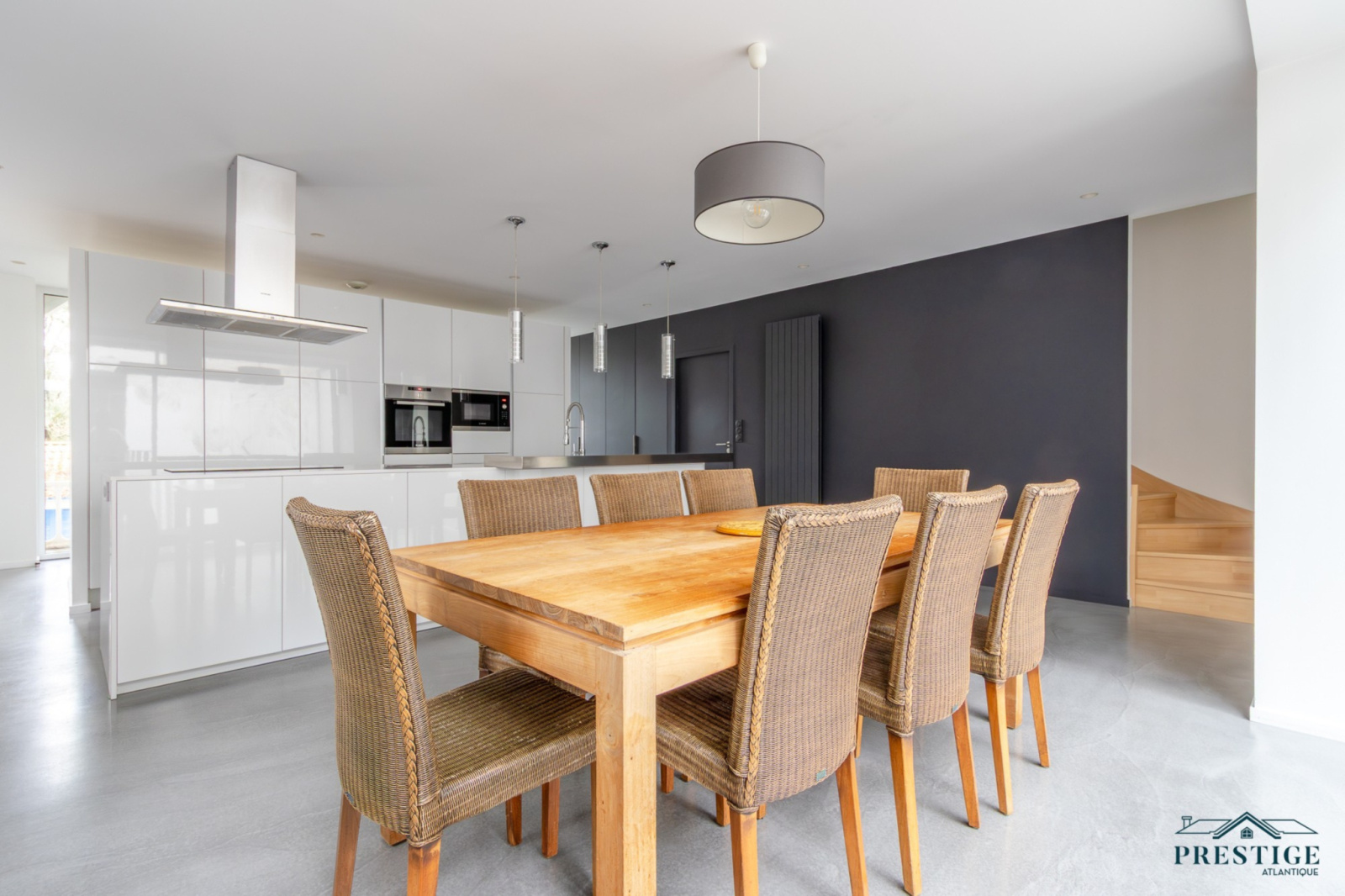 EXCLUSIVITÉ - PRESTIGE ATLANTIQUE. Nichée dans un écrin de verdure, au cœur des pins et à proximité immédiate des plages et des commerces, cette superbe villa balnéaire du début des années 1900 a fait l’objet d’une rénovation complète accompagnée d’une extension offrant des prestations soignées et de qualité, elle développe une surface habitable de 205 m² répartie sur trois niveaux. Une entrée dessert une spacieuse pièce de vie composé d’une cuisine aménagée équipée haut de gamme ainsi que d’un salon agrémentée d’un poêle bois, l’ensemble baignée de lumière de par de larges baies vitrées venant effacer les limites entre l’intérieur et l’extérieur, le tout en accès direct à sa terrasse sublimée de sa piscine surplombant le jardin. Une chambre ainsi qu'une salle de bain viennent parfaire la distribution de ce niveau. L’étage se compose de deux suites avec salle d’eau privatives et d'un dressing central. Une attention toute particulière pour le rez-de-jardin bénéficiant d’un vaste espace parental jouissant d'un accès à la terrasse au panorama du parc. Un bureau, une buanderie ainsi qu'une salle dédiée aux événements festifs donnent une touche finale à ce bien d’exception alliant le charme de l'ancien et le moderne. Édifiée sur une parcelle entièrement close de 1368 m² paysager et arboré, un grand garage de 45m2 donne une touche finale à ce bien à la situation géographique exceptionnelle.“Les informations sur les risques auxquels ce bien est exposé sont disponibles sur le site Géorisques http://www.georisques.gouv.fr”. Pour plus de renseignements ou pour organiser une visite privée, contactez-nous sans plus attendre, PRESTIGE ATLANTIQUE 02.40.21.91.13. Prix de vente 945 000€ FAI dont 5% d'honoraires agence à la charge de l'acquéreur soit un prix net vendeur de 900 000€ (RCS. Saint- Nazaire 897 587 946).