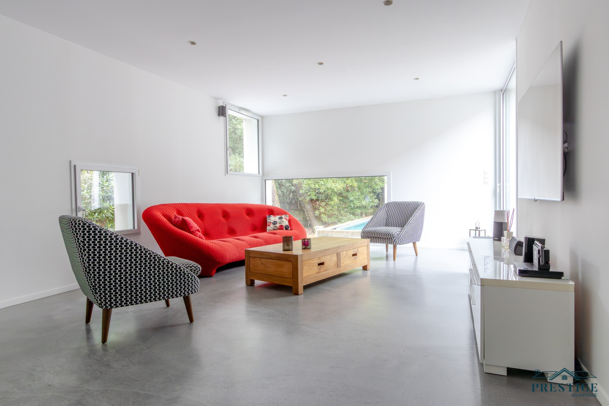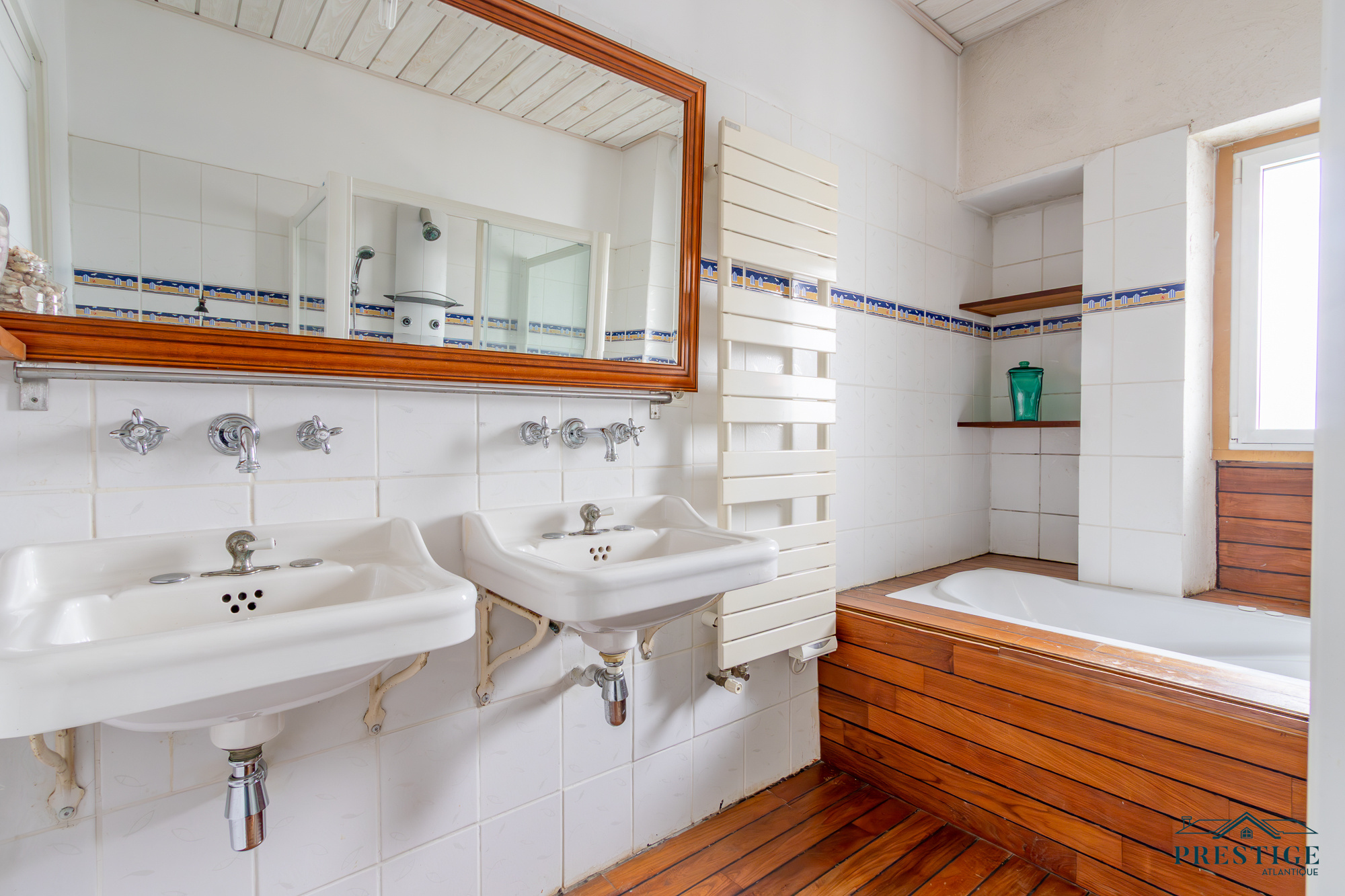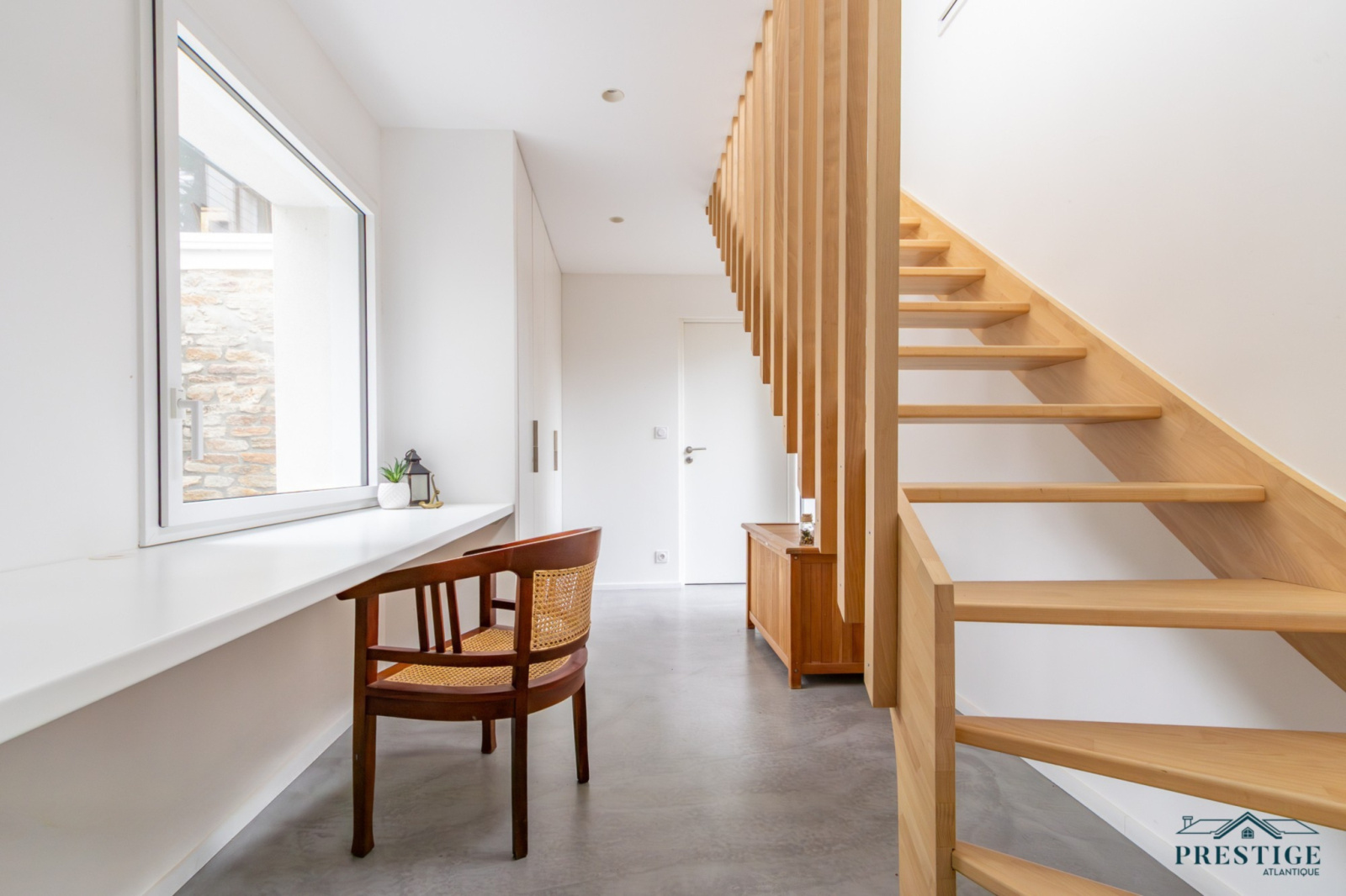 EXCLUSIVITÉ - PRESTIGE ATLANTIQUE. Nichée dans un écrin de verdure, au cœur des pins et à proximité immédiate des plages et des commerces, cette superbe villa balnéaire du début des années 1900 a fait l’objet d’une rénovation complète accompagnée d’une extension offrant des prestations soignées et de qualité, elle développe une surface habitable de 205 m² répartie sur trois niveaux. Une entrée dessert une spacieuse pièce de vie composé d’une cuisine aménagée équipée haut de gamme ainsi que d’un salon agrémentée d’un poêle bois, l’ensemble baignée de lumière de par de larges baies vitrées venant effacer les limites entre l’intérieur et l’extérieur, le tout en accès direct à sa terrasse sublimée de sa piscine surplombant le jardin. Une chambre ainsi qu'une salle de bain viennent parfaire la distribution de ce niveau. L’étage se compose de deux suites avec salle d’eau privatives et d'un dressing central. Une attention toute particulière pour le rez-de-jardin bénéficiant d’un vaste espace parental jouissant d'un accès à la terrasse au panorama du parc. Un bureau, une buanderie ainsi qu'une salle dédiée aux événements festifs donnent une touche finale à ce bien d’exception alliant le charme de l'ancien et le moderne. Édifiée sur une parcelle entièrement close de 1368 m² paysager et arboré, un grand garage de 45m2 donne une touche finale à ce bien à la situation géographique exceptionnelle.“Les informations sur les risques auxquels ce bien est exposé sont disponibles sur le site Géorisques http://www.georisques.gouv.fr”. Pour plus de renseignements ou pour organiser une visite privée, contactez-nous sans plus attendre, PRESTIGE ATLANTIQUE 02.40.21.91.13. Prix de vente 945 000€ FAI dont 5% d'honoraires agence à la charge de l'acquéreur soit un prix net vendeur de 900 000€ (RCS. Saint- Nazaire 897 587 946).