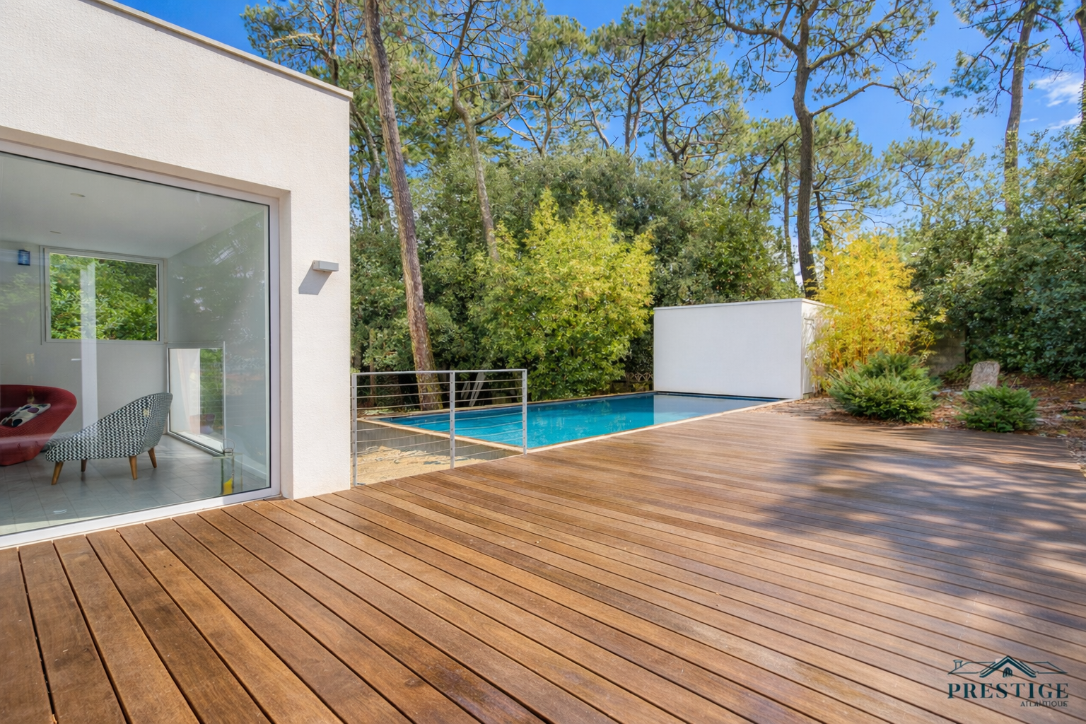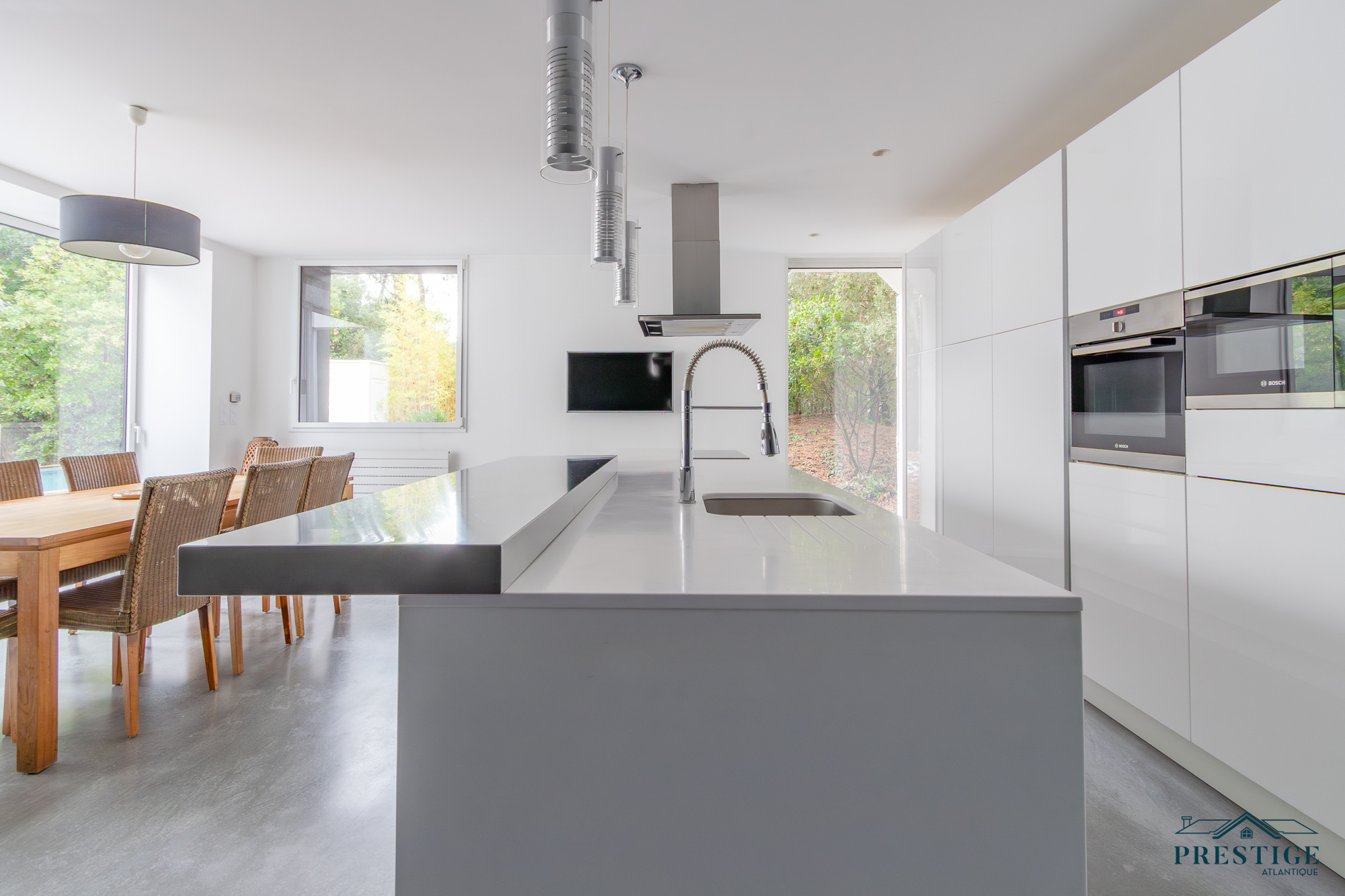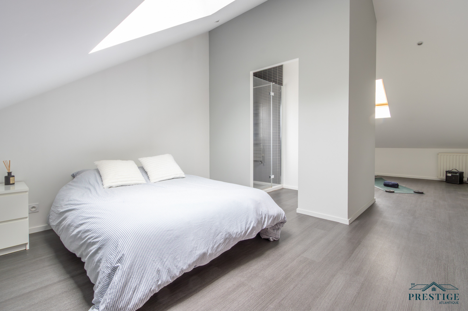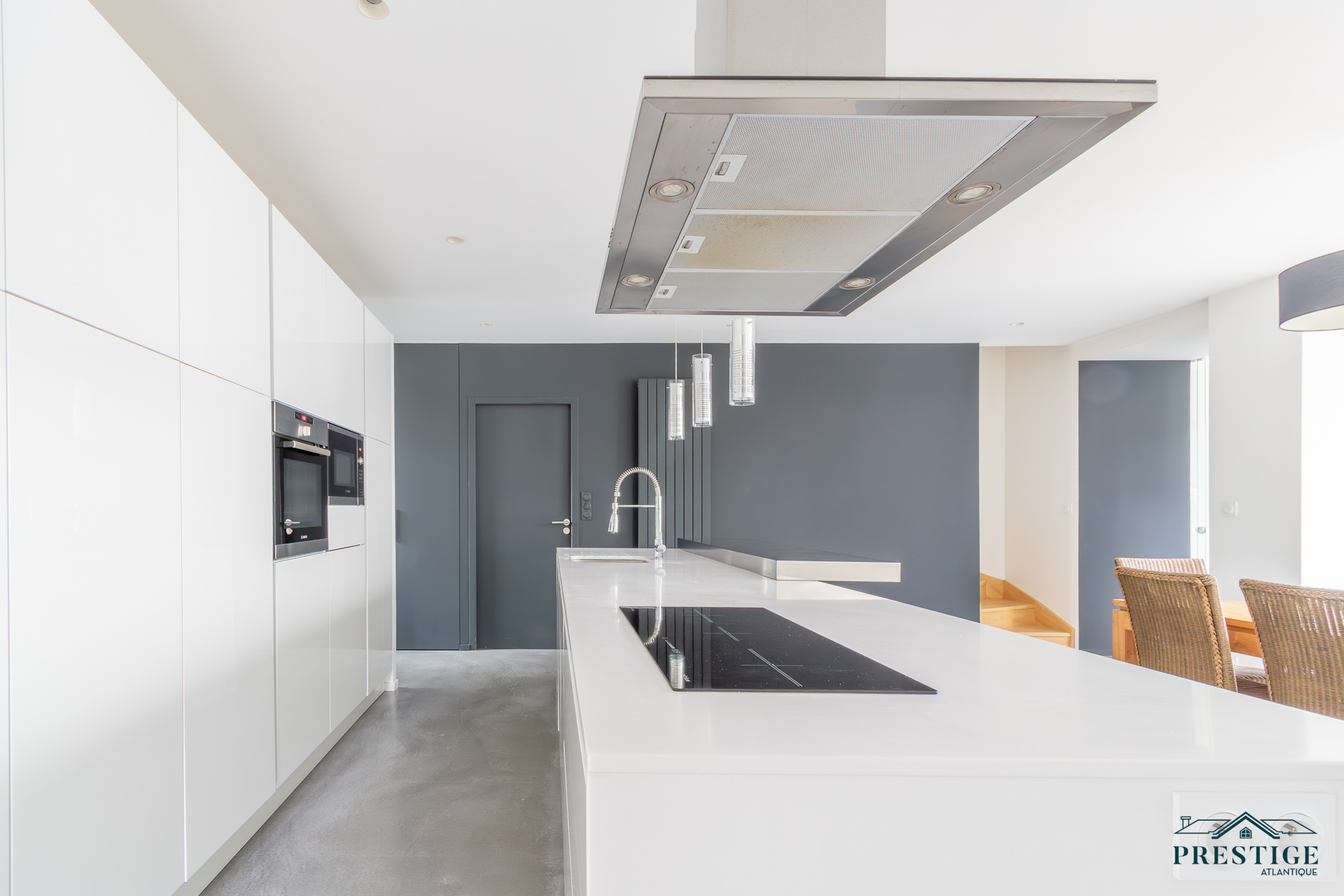 EXCLUSIVITÉ - PRESTIGE ATLANTIQUE. Nichée dans un écrin de verdure, au cœur des pins et à proximité immédiate des plages et des commerces, cette superbe villa balnéaire du début des années 1900 a fait l’objet d’une rénovation complète accompagnée d’une extension offrant des prestations soignées et de qualité, elle développe une surface habitable de 205 m² répartie sur trois niveaux. Une entrée dessert une spacieuse pièce de vie composé d’une cuisine aménagée équipée haut de gamme ainsi que d’un salon agrémentée d’un poêle bois, l’ensemble baignée de lumière de par de larges baies vitrées venant effacer les limites entre l’intérieur et l’extérieur, le tout en accès direct à sa terrasse sublimée de sa piscine surplombant le jardin. Une chambre ainsi qu'une salle de bain viennent parfaire la distribution de ce niveau. L’étage se compose de deux suites avec salle d’eau privatives et d'un dressing central. Une attention toute particulière pour le rez-de-jardin bénéficiant d’un vaste espace parental jouissant d'un accès à la terrasse au panorama du parc. Un bureau, une buanderie ainsi qu'une salle dédiée aux événements festifs donnent une touche finale à ce bien d’exception alliant le charme de l'ancien et le moderne. Édifiée sur une parcelle entièrement close de 1368 m² paysager et arboré, un grand garage de 45m2 donne une touche finale à ce bien à la situation géographique exceptionnelle.“Les informations sur les risques auxquels ce bien est exposé sont disponibles sur le site Géorisques http://www.georisques.gouv.fr”. Pour plus de renseignements ou pour organiser une visite privée, contactez-nous sans plus attendre, PRESTIGE ATLANTIQUE 02.40.21.91.13. Prix de vente 945 000€ FAI dont 5% d'honoraires agence à la charge de l'acquéreur soit un prix net vendeur de 900 000€ (RCS. Saint- Nazaire 897 587 946).