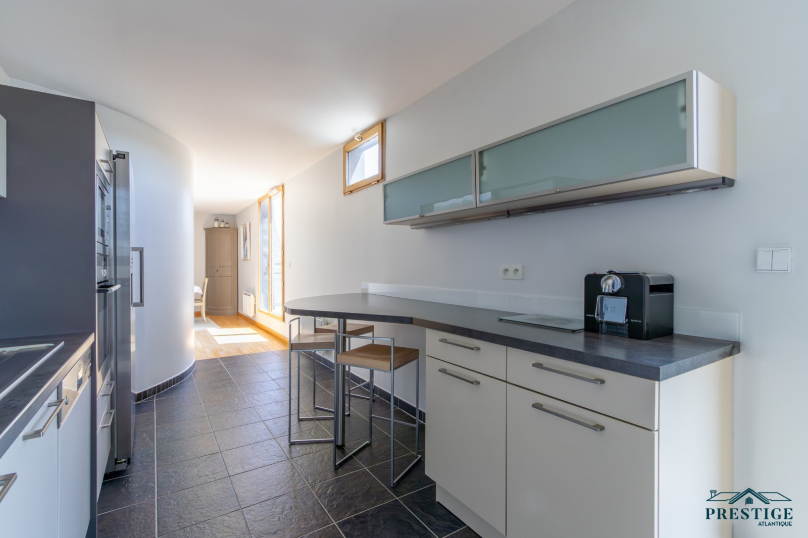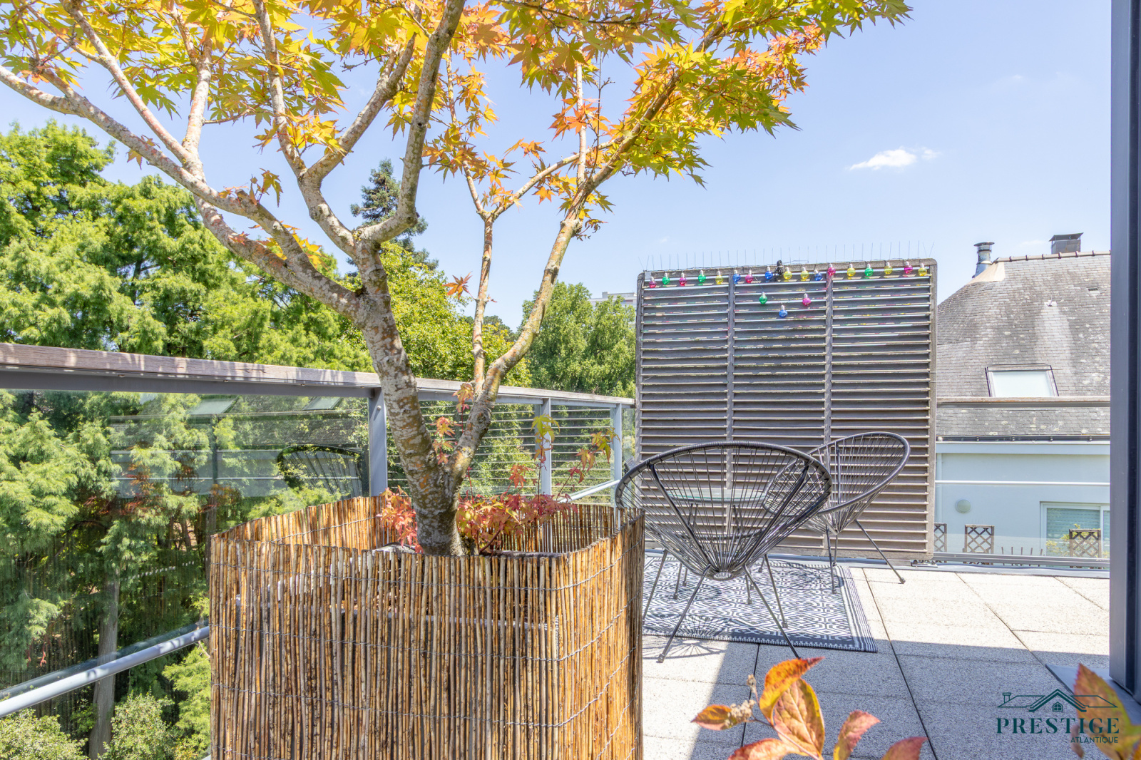 EXCLUSIVITÉ - PRESTIGE ATLANTIQUE. Situé dans un des quartier les plus prisé de Nantes, face au parc de Procé, dans un immeuble sécurisé avec ascenseur datant de 2010, à la proximité immédiate des commerces et des transports, cet appartement seul, niché au dernier étage, agencé avec goût et aux prestations abouties dispose d'une superficie habitable de 110 m2 et de deux terrasses totalisant 76 m2. Une entrée avec placard vient desservir un bel espace de vie en double réception agrémenté d'une cuisine aménagée et équipée semi-ouverte, le tout baigné de lumière de par ses larges ouvertures bénéficiant d’une triple exposition et donnant sur les deux terrasses, offrant une vue imprenable sur la ville et le parc verdoyant. La partie nuit séparée se compose de trois chambres avec placards et d’un espace bureau. Une attention toute particulière pour la chambre parentale traversante, jouissant de son accès privatif sur la terrasse et offrant la possibilité de créer une master room. Une salle d’eau et une buanderie viennent parfaire la distribution. Un garage double et un abri de jardin donnent une touche finale à ce bien d’exception. Un appartement unique dans un environnement privilégié aux nombreux atouts afin de vous offrir un cadre de vie idéal. 23 lots principaux. Charges de copropriété 2138€ annuelles. “Les informations sur les risques auxquels ce bien est exposé sont disponibles sur le site Géorisques http://www.georisques.gouv.fr”. Pour plus de renseignements ou pour organiser une visite privée, contactez-nous sans plus attendre, PRESTIGE ATLANTIQUE 02.40.21.91.13. Prix de vente 575 000€, les honoraires sont à la charge du vendeur. (RCS. Saint- Nazaire 897 587 946).