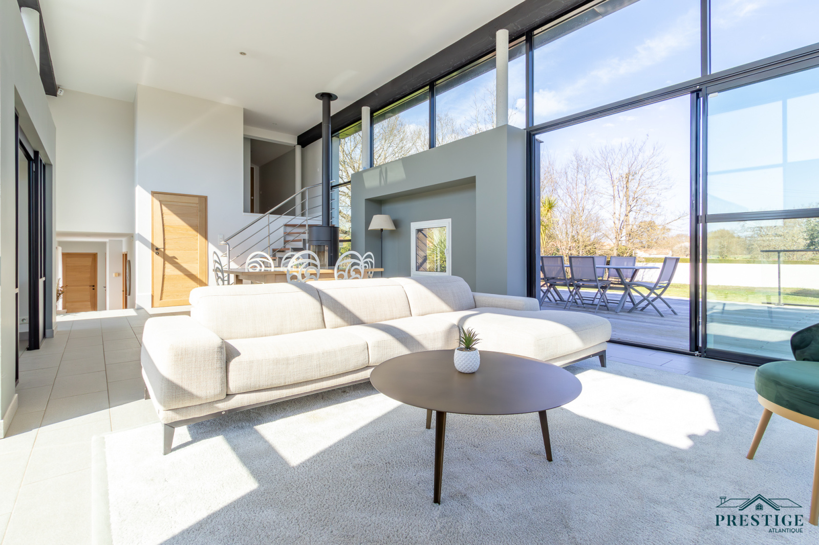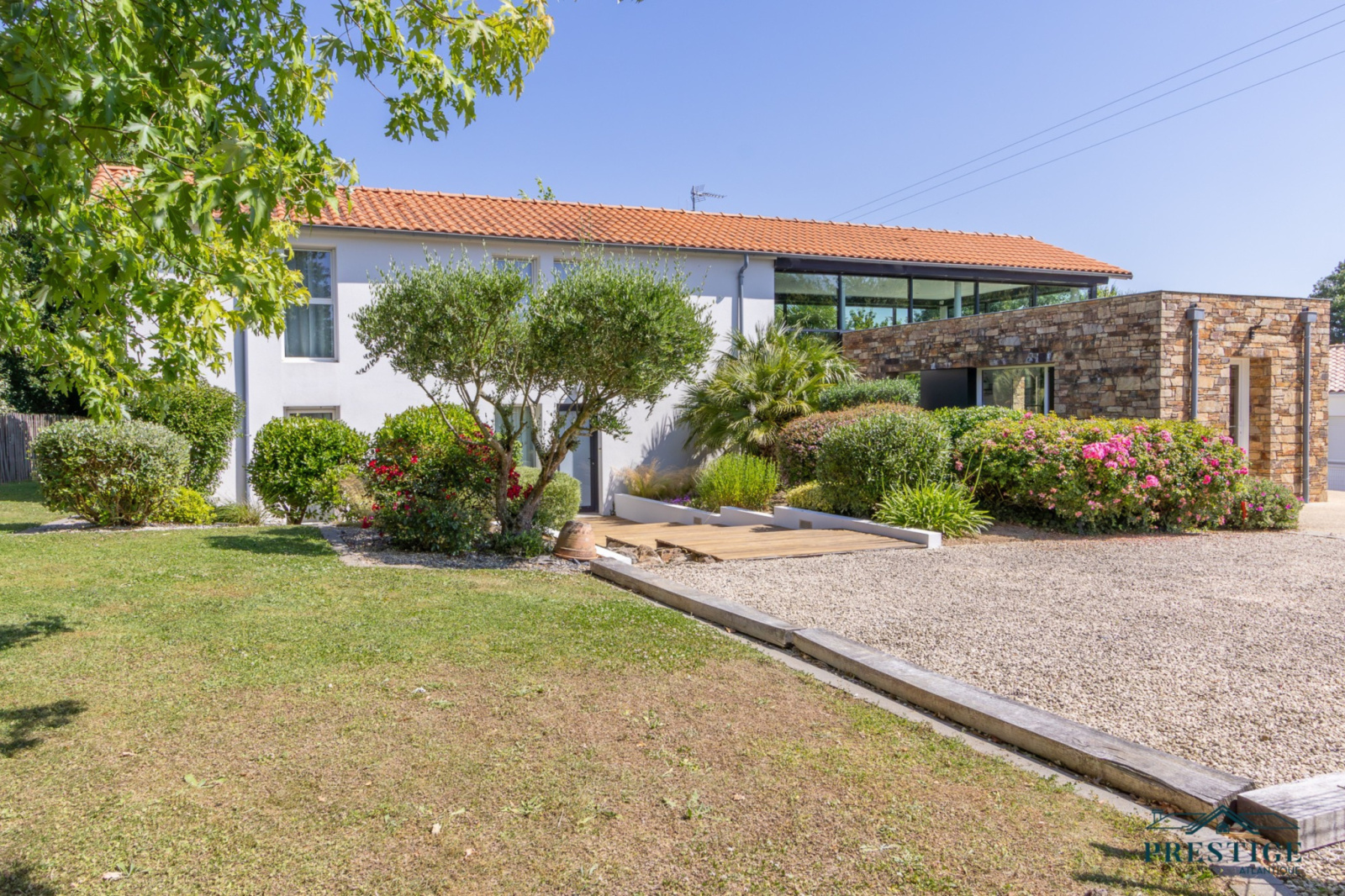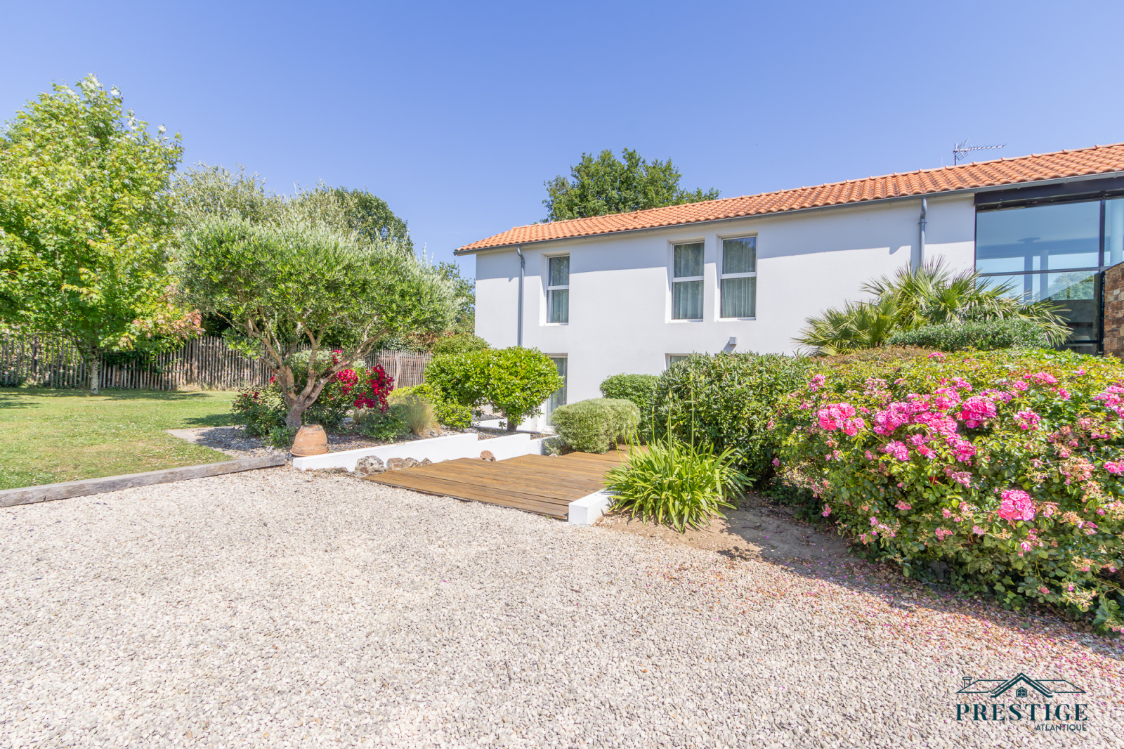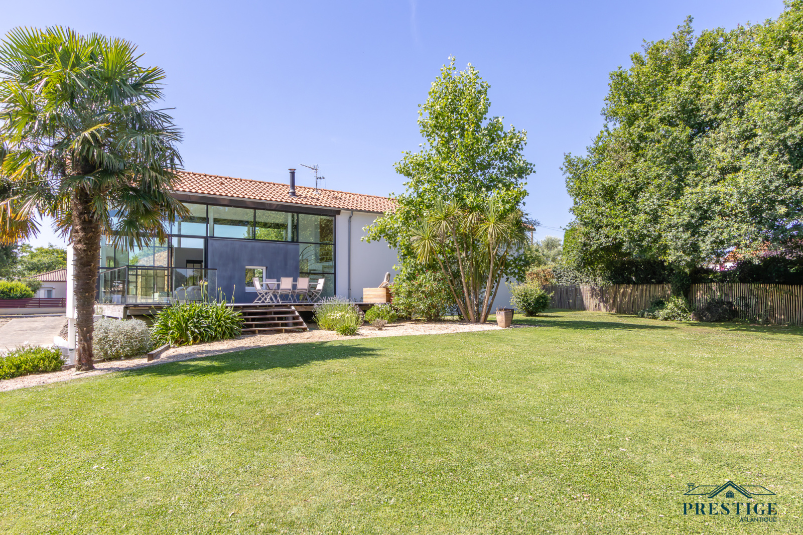 VENDU PAR PRESTIGE ATLANTIQUE. HAVRE DE PAIX HAUT DE GAMME & CALME ABSOLU. Dans un environnement verdoyant et au fond de son impasse cette villa à l’architecture remarquable séduit par son agencement raffiné et ses matériaux nobles disposant d’une superficie utile de 188m². Dès l’entrée, le ton est donné : une spacieuse pièce de vie baignée de lumière, sublimée par une belle hauteur sous plafond prolongée de sa cuisine aménagée et équipée dans un esprit laboratoire. L’ensemble crée une harmonie parfaite et offre une perspective imprenable sur sa spacieuse terrasse, dévoilant un jardin paysager au panorama de la rivière du Tenu, refuge paisible des oiseaux migrateurs. Une suite parentale avec dressing, salle d’eau et un accès direct sur l’extérieur ainsi qu’une chambre viennent confirmer la vie de plain-pied. Une buanderie complète la distribution. Au niveau supérieur, un couloir dessert une chambre et une attention particulière pour sa somptueuse Master Room, où chaque détail a été pensé pour un confort optimal dans une atmosphère chaleureuse et cocooning. Edifiée sur une parcelle close de 1581 m2 joliment paysager et arboré, un garage de 48m2 donne un point final à ce bien. Unique et rare, elle offre un cadre de vie idyllique au rythme de la nature. "Les informations sur les risques auxquels ce bien est exposé sont disponibles sur le site Géorisques http://www.georisques.gouv.fr”. Pour plus de renseignements ou pour organiser une visite privée, contactez-nous sans plus attendre, PRESTIGE ATLANTIQUE 02.40.21.91.13. Prix de vente 535 500€ FAI dont 5 % d'honoraires agence à la charge de l'acquéreur soit un prix net vendeur de 510 000€ (RCS. Saint- Nazaire 897 587 946).
