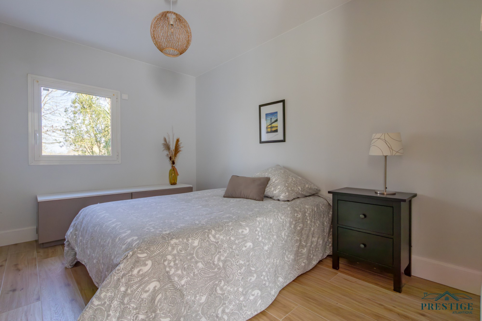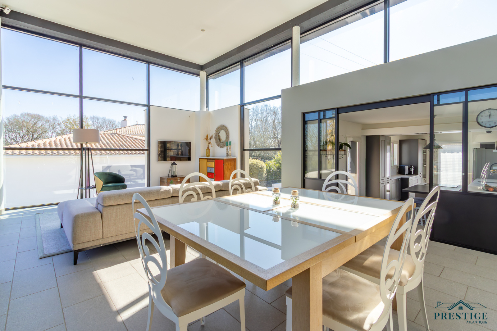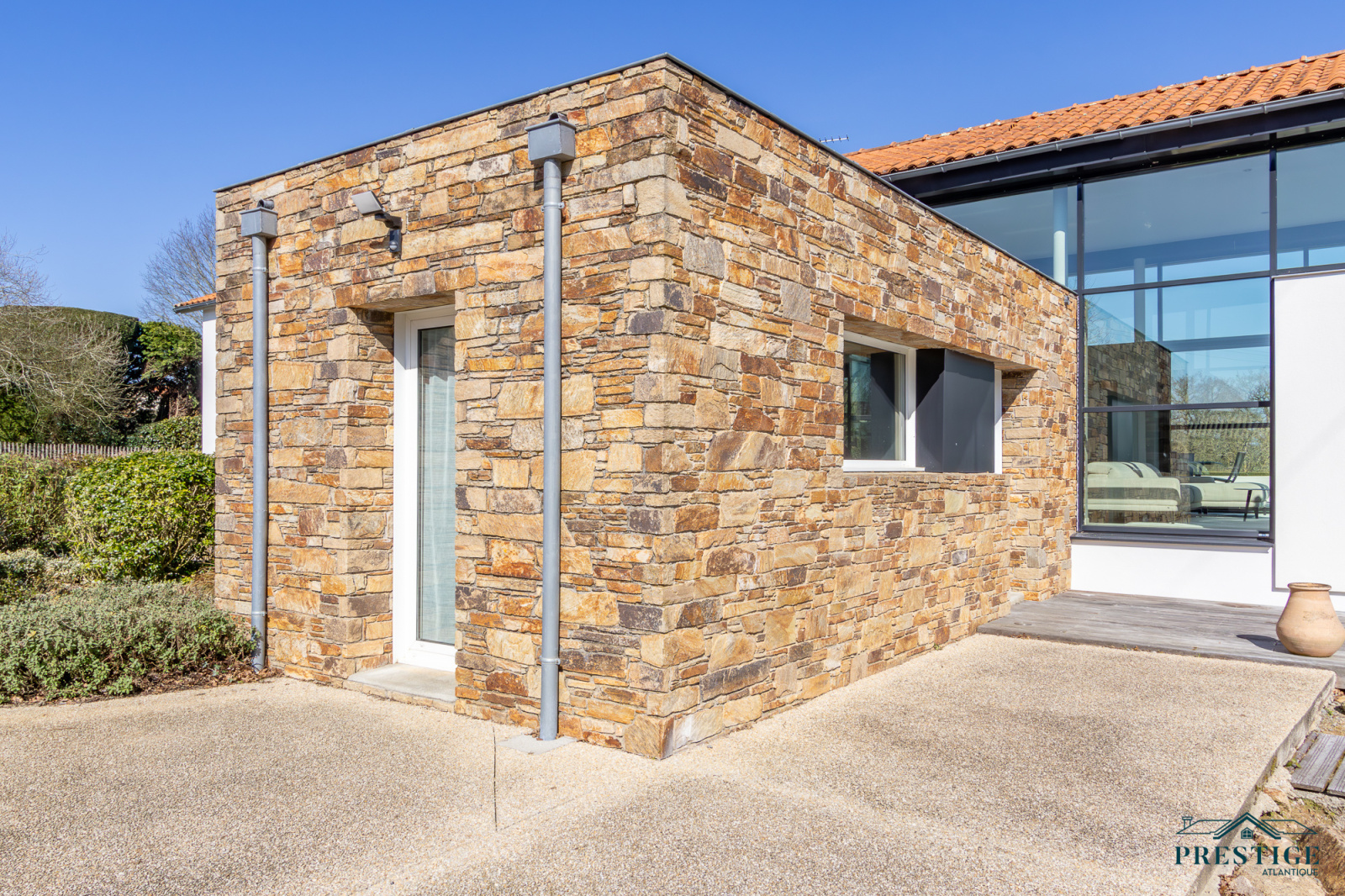 VENDU PAR PRESTIGE ATLANTIQUE. HAVRE DE PAIX HAUT DE GAMME & CALME ABSOLU. Dans un environnement verdoyant et au fond de son impasse cette villa à l’architecture remarquable séduit par son agencement raffiné et ses matériaux nobles disposant d’une superficie utile de 188m². Dès l’entrée, le ton est donné : une spacieuse pièce de vie baignée de lumière, sublimée par une belle hauteur sous plafond prolongée de sa cuisine aménagée et équipée dans un esprit laboratoire. L’ensemble crée une harmonie parfaite et offre une perspective imprenable sur sa spacieuse terrasse, dévoilant un jardin paysager au panorama de la rivière du Tenu, refuge paisible des oiseaux migrateurs. Une suite parentale avec dressing, salle d’eau et un accès direct sur l’extérieur ainsi qu’une chambre viennent confirmer la vie de plain-pied. Une buanderie complète la distribution. Au niveau supérieur, un couloir dessert une chambre et une attention particulière pour sa somptueuse Master Room, où chaque détail a été pensé pour un confort optimal dans une atmosphère chaleureuse et cocooning. Edifiée sur une parcelle close de 1581 m2 joliment paysager et arboré, un garage de 48m2 donne un point final à ce bien. Unique et rare, elle offre un cadre de vie idyllique au rythme de la nature. "Les informations sur les risques auxquels ce bien est exposé sont disponibles sur le site Géorisques http://www.georisques.gouv.fr”. Pour plus de renseignements ou pour organiser une visite privée, contactez-nous sans plus attendre, PRESTIGE ATLANTIQUE 02.40.21.91.13. Prix de vente 535 500€ FAI dont 5 % d'honoraires agence à la charge de l'acquéreur soit un prix net vendeur de 510 000€ (RCS. Saint- Nazaire 897 587 946).