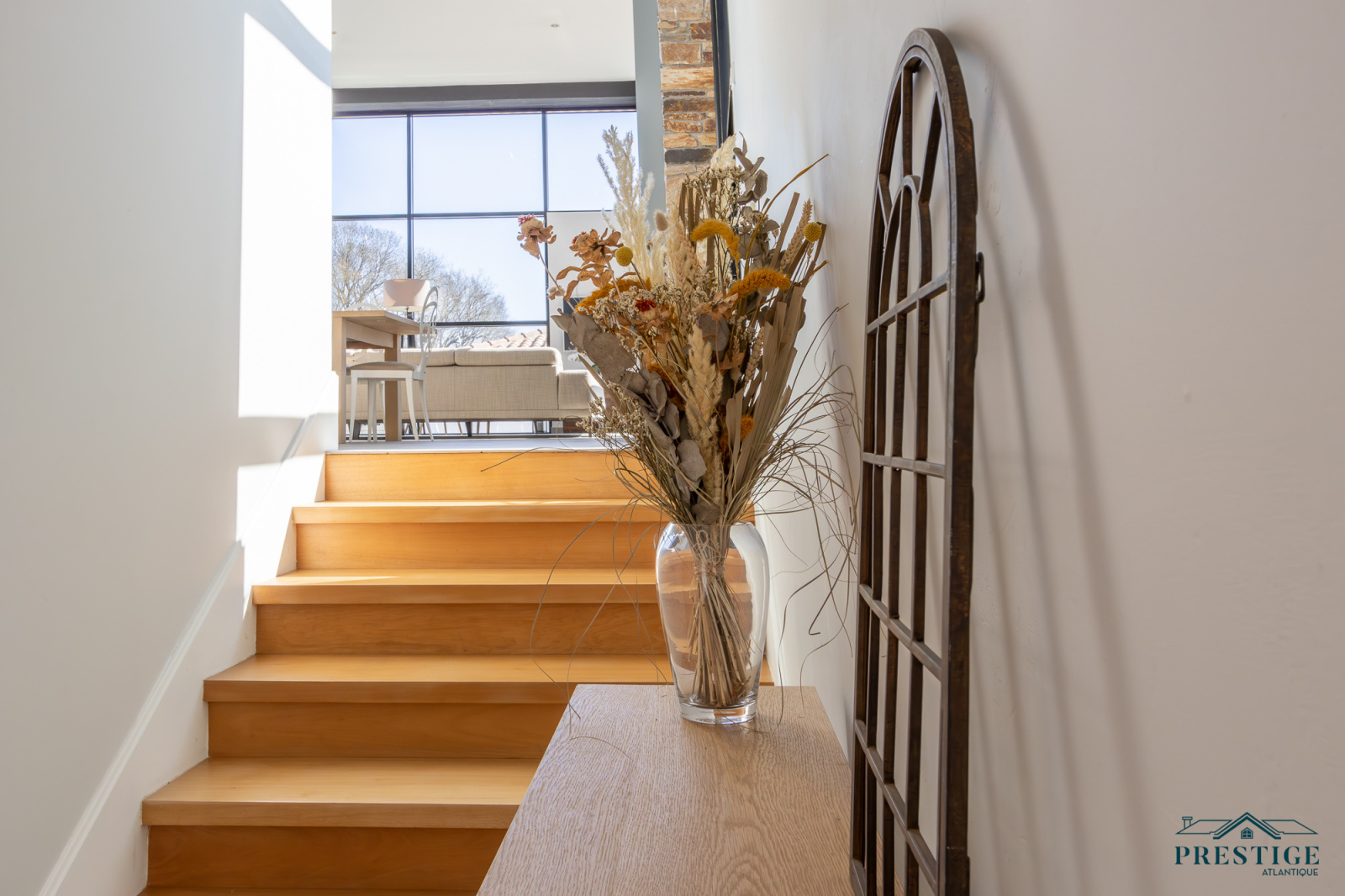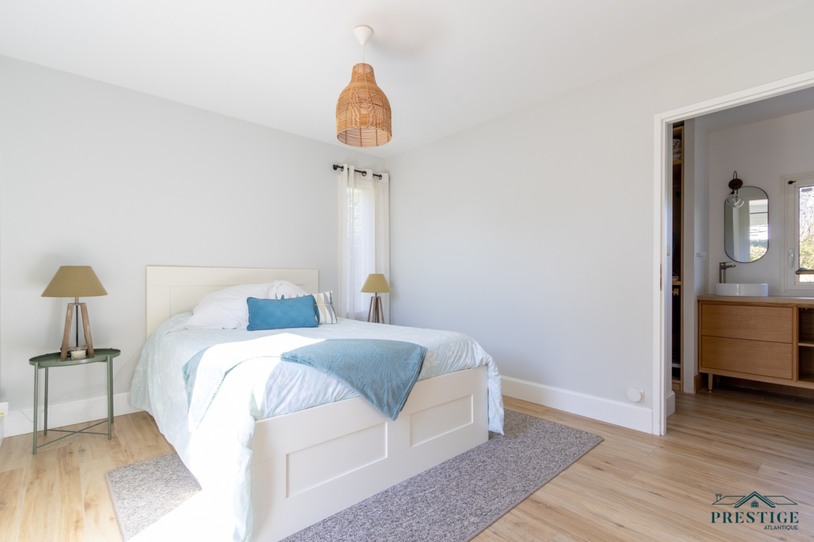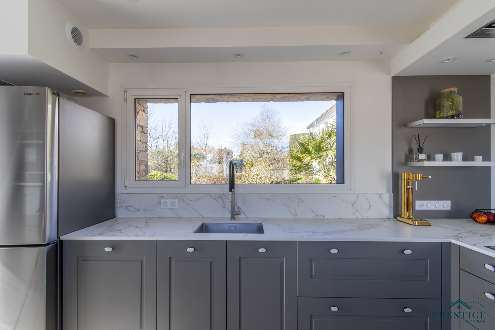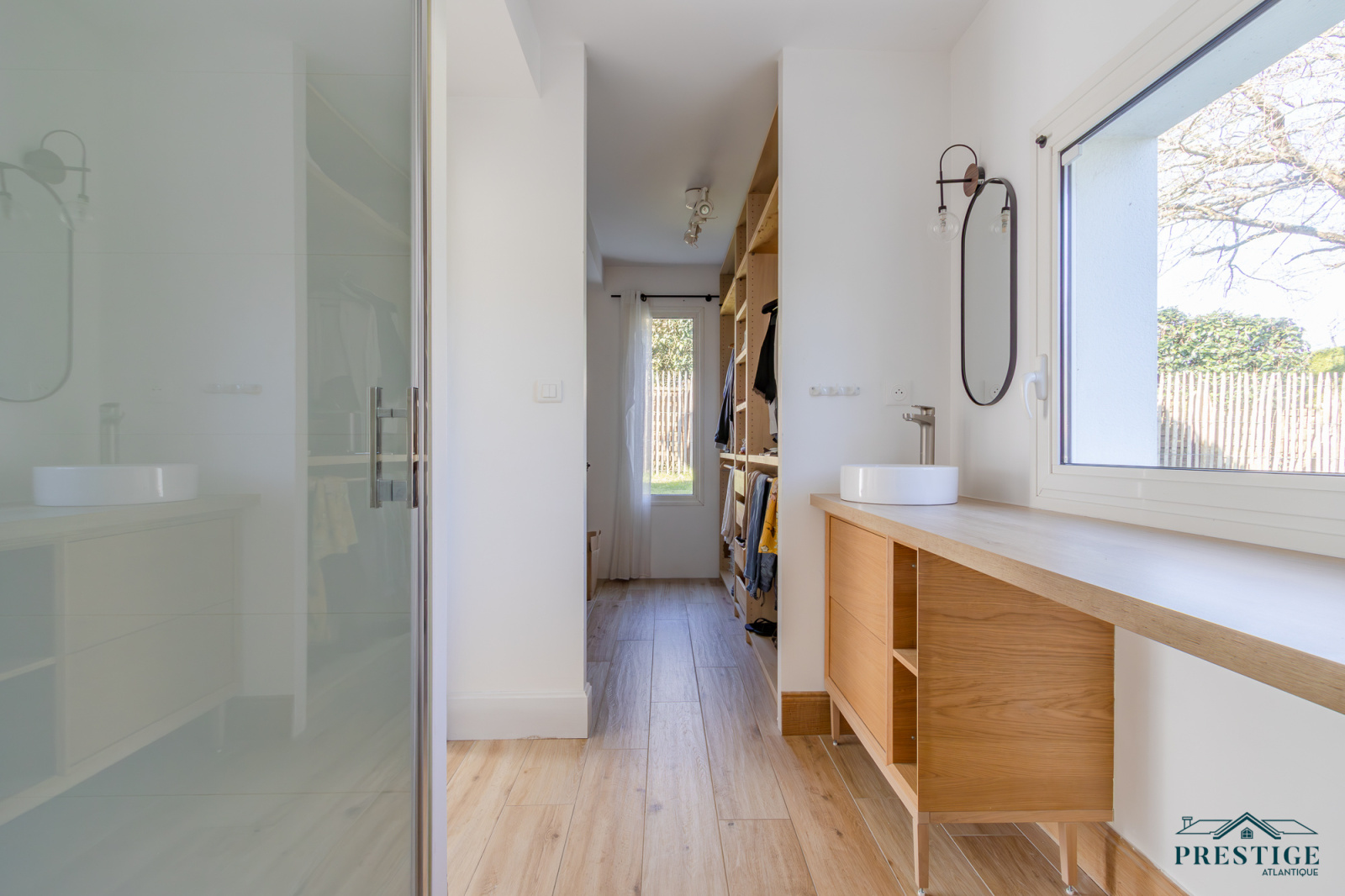 VENDU PAR PRESTIGE ATLANTIQUE. HAVRE DE PAIX HAUT DE GAMME & CALME ABSOLU. Dans un environnement verdoyant et au fond de son impasse cette villa à l’architecture remarquable séduit par son agencement raffiné et ses matériaux nobles disposant d’une superficie utile de 188m². Dès l’entrée, le ton est donné : une spacieuse pièce de vie baignée de lumière, sublimée par une belle hauteur sous plafond prolongée de sa cuisine aménagée et équipée dans un esprit laboratoire. L’ensemble crée une harmonie parfaite et offre une perspective imprenable sur sa spacieuse terrasse, dévoilant un jardin paysager au panorama de la rivière du Tenu, refuge paisible des oiseaux migrateurs. Une suite parentale avec dressing, salle d’eau et un accès direct sur l’extérieur ainsi qu’une chambre viennent confirmer la vie de plain-pied. Une buanderie complète la distribution. Au niveau supérieur, un couloir dessert une chambre et une attention particulière pour sa somptueuse Master Room, où chaque détail a été pensé pour un confort optimal dans une atmosphère chaleureuse et cocooning. Edifiée sur une parcelle close de 1581 m2 joliment paysager et arboré, un garage de 48m2 donne un point final à ce bien. Unique et rare, elle offre un cadre de vie idyllique au rythme de la nature. "Les informations sur les risques auxquels ce bien est exposé sont disponibles sur le site Géorisques http://www.georisques.gouv.fr”. Pour plus de renseignements ou pour organiser une visite privée, contactez-nous sans plus attendre, PRESTIGE ATLANTIQUE 02.40.21.91.13. Prix de vente 535 500€ FAI dont 5 % d'honoraires agence à la charge de l'acquéreur soit un prix net vendeur de 510 000€ (RCS. Saint- Nazaire 897 587 946).