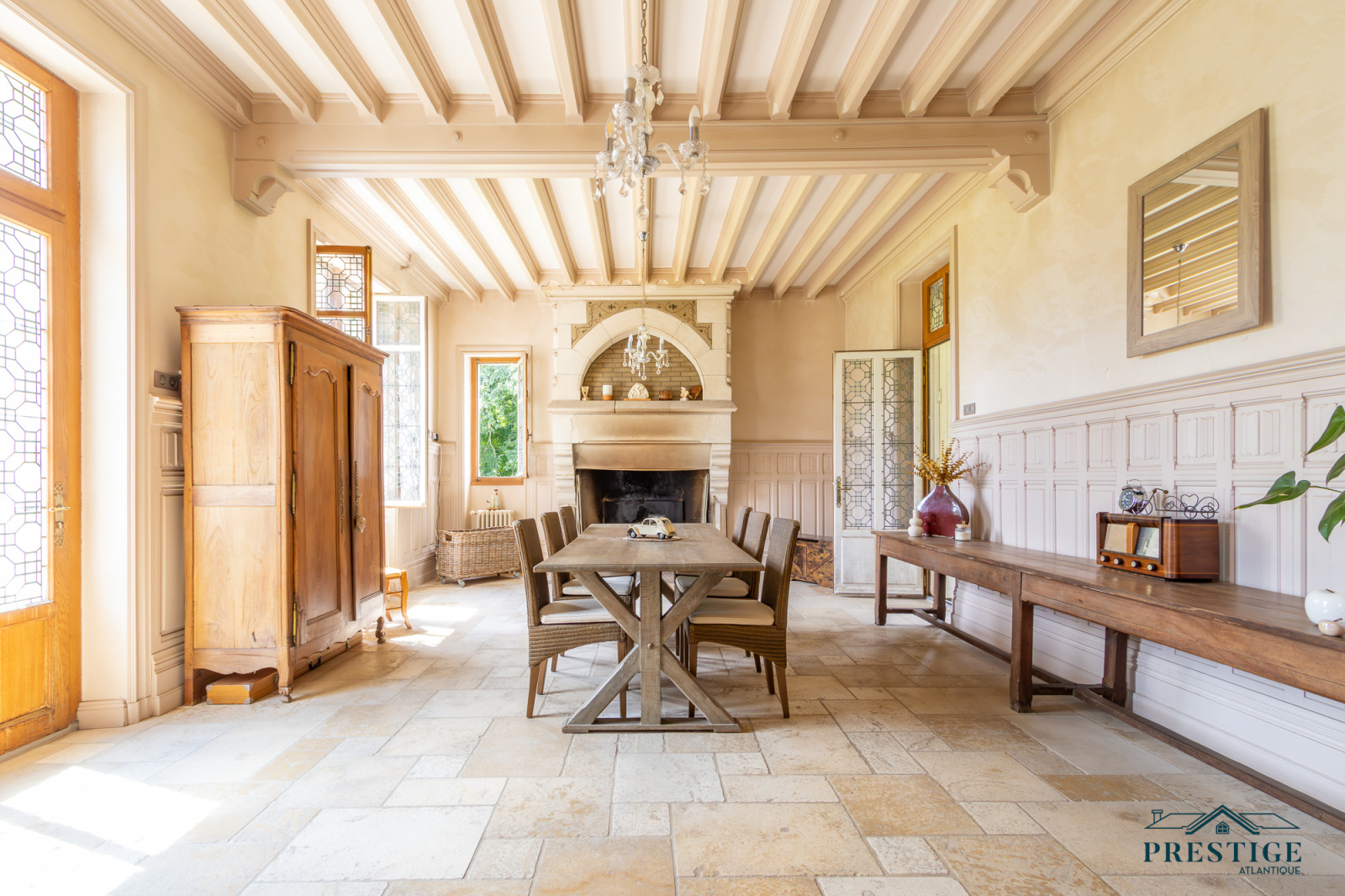 EXCLUSIVITÉ - PRESTIGE ATLANTIQUE. PROPRIÉTÉ DE CHARME, un véritable havre de paix niché sur une parcelle de 19 385m2 comprenant une bâtisse de 1888 disposant de 237m2 habitables et d’une dépendance avec salle de réception sublimée de sa vue imprenable sur sa piscine à débordement. Le hall d’entrée agrémenté de son poêle à bois s’ouvre sur une magnifique et spacieuse double réception dotée d’un sol en chêne massif et de pierres naturelles. Le lieu cumule tous les codes de l’ancien : cheminée, poutres et charpente apparentes, hauteur sous plafond, fenêtres et volets bois d’époque. Une cuisine ancienne et fonctionnelle ainsi qu’une arrière cuisine viennent parfaire le rez de chaussée. A l’étage, un palier dessert trois spacieuses chambres bénéficiant d'un panorama sur le parc à couper le souffle, une vaste salle de bain avec son espace buanderie et un dressing complètent le lieu. Le dernier étage se compose d'une quatrième chambre et d'un bureau. Une propriété de Prestige au calme absolu à proximité du bourg et non loin des plages et du port collet. “Les informations sur les risques auxquels ce bien est exposé sont disponibles sur le site Géorisques http://www.georisques.gouv.fr”. Pour plus de renseignements ou pour organiser une visite privée, contactez-nous sans plus attendre, PRESTIGE ATLANTIQUE 02.40.21.91.13. Prix de vente 850 000€ FAI dont 5 % d'honoraires agence à la charge de l'acquéreur soit un prix net vendeur de 809 523€ (RCS. Saint- Nazaire 897 587 946).