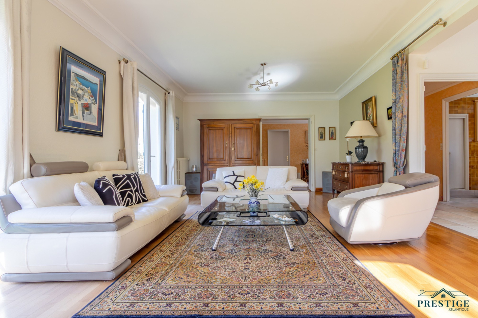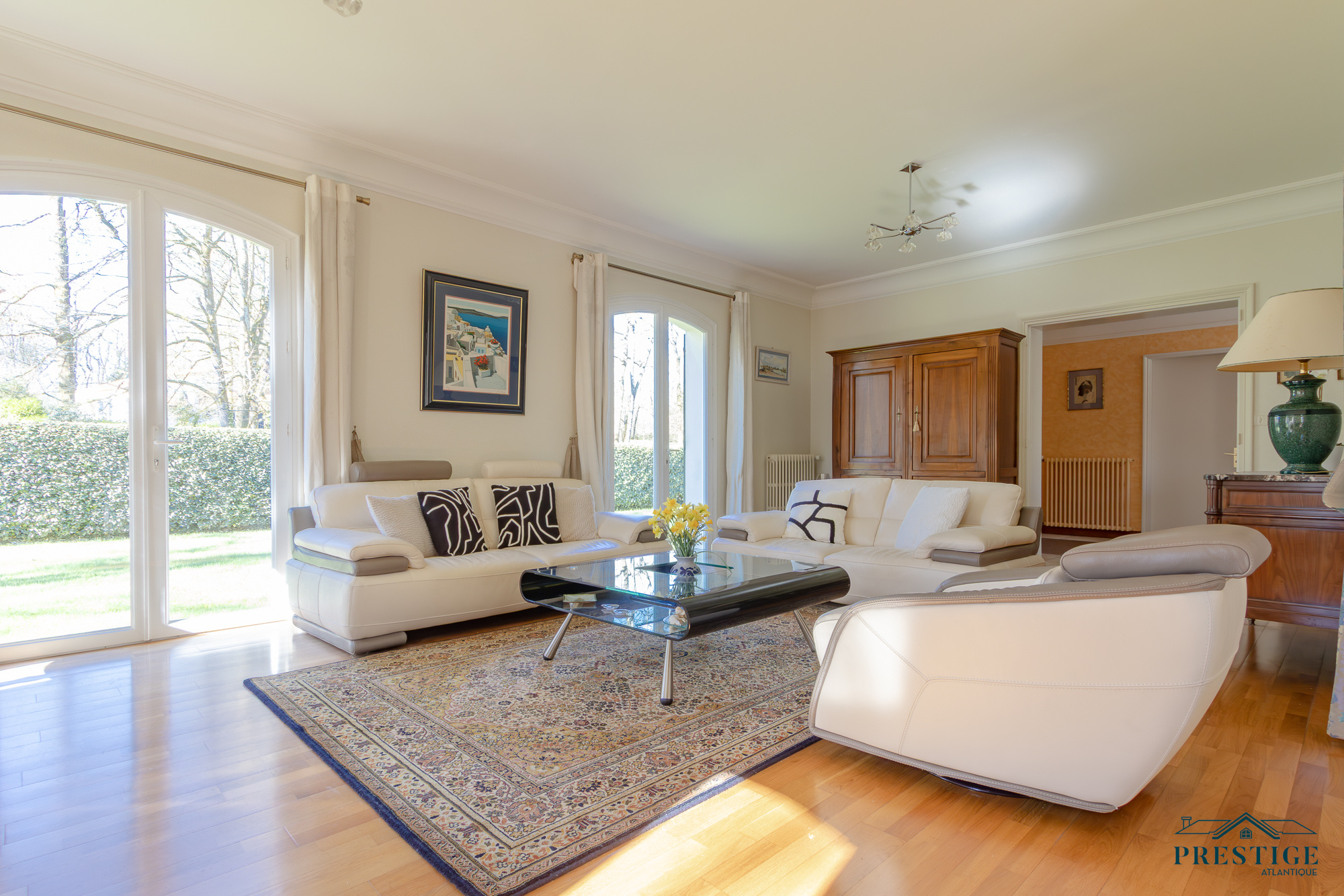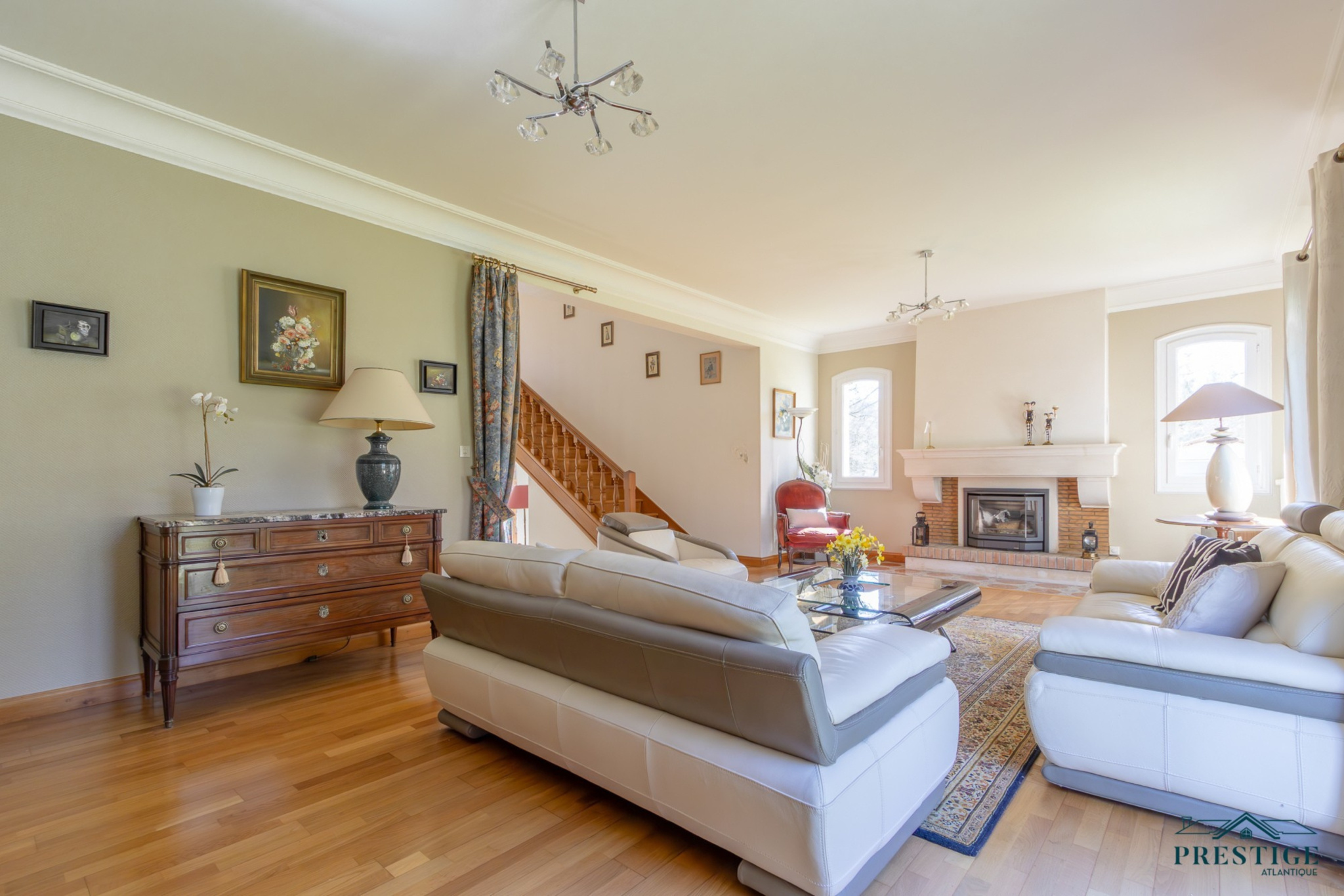 EXCLUSIVITÉ - PRESTIGE ATLANTIQUE. PROPRIÉTÉ D’EXCEPTION. Nichée au coeur d’un écrin de verdure, dans le quartier recherché résidentiel de la Grézillière, cette élégante propriété familiale de 216 m² habitables se déploie au sein d’un magnifique parc arboré de 3566m2. L’entrée s’ouvre sur une vaste pièce de vie en double réception à l’architecture remarquable, agrémentée d’une cheminée et en accès direct sur l’extérieur par ses nombreuses ouvertures. Une cuisine indépendante, aménagée et équipée, donnant sur la terrasse, ainsi qu’une buanderie complètent harmonieusement ce lieu de vie convivial et fonctionnel. L’espace nuit propose quatre chambres, dont trois bénéficient de placards intégrés, se partageant deux salles de bains et offrant un véritable confort. Un bureau complète le Rez de chaussée. L’étage dispose d'un second salon intimiste. Au niveau inférieur, un grand garage de 55 m², une salle de jeux, une cave ainsi qu’un atelier donnent une touche finale à ce bien. Cette demeure de caractère offre un cadre de vie rare et préservé, conjuguant nature, tranquillité et proximité immédiate des commodités. Une opportunité exclusive signée PRESTIGE ATLANTIQUE pour les amateurs de biens uniques. Maison en copropriété aucune procédure en cours. Montant des charges annuelles : 596 €. Les informations sur les risques auxquels ce bien est exposé sont disponibles sur le site Géorisques http://www.georisques.gouv.fr. Prix de vente 756 000€ HAI dont 5 % d'honoraires agence à la charge de l'acquéreur soit un prix net vendeur de 720 000€. Prestige-Atlantique. (RCS. Saint-Nazaire 897 587 945 - CPI 44022021000000013) contactez l'agence au 02.40.21.91.13